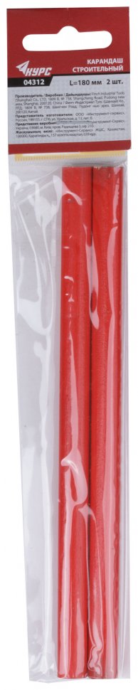 Строительный карандаш КУРС 2 шт. 04312 применяется для разметки в процессе строительных и малярных работ. С его помощью можно нанести линию нужной толщины. Длина карандаша - 180 мм. В комплекте 2 штуки.