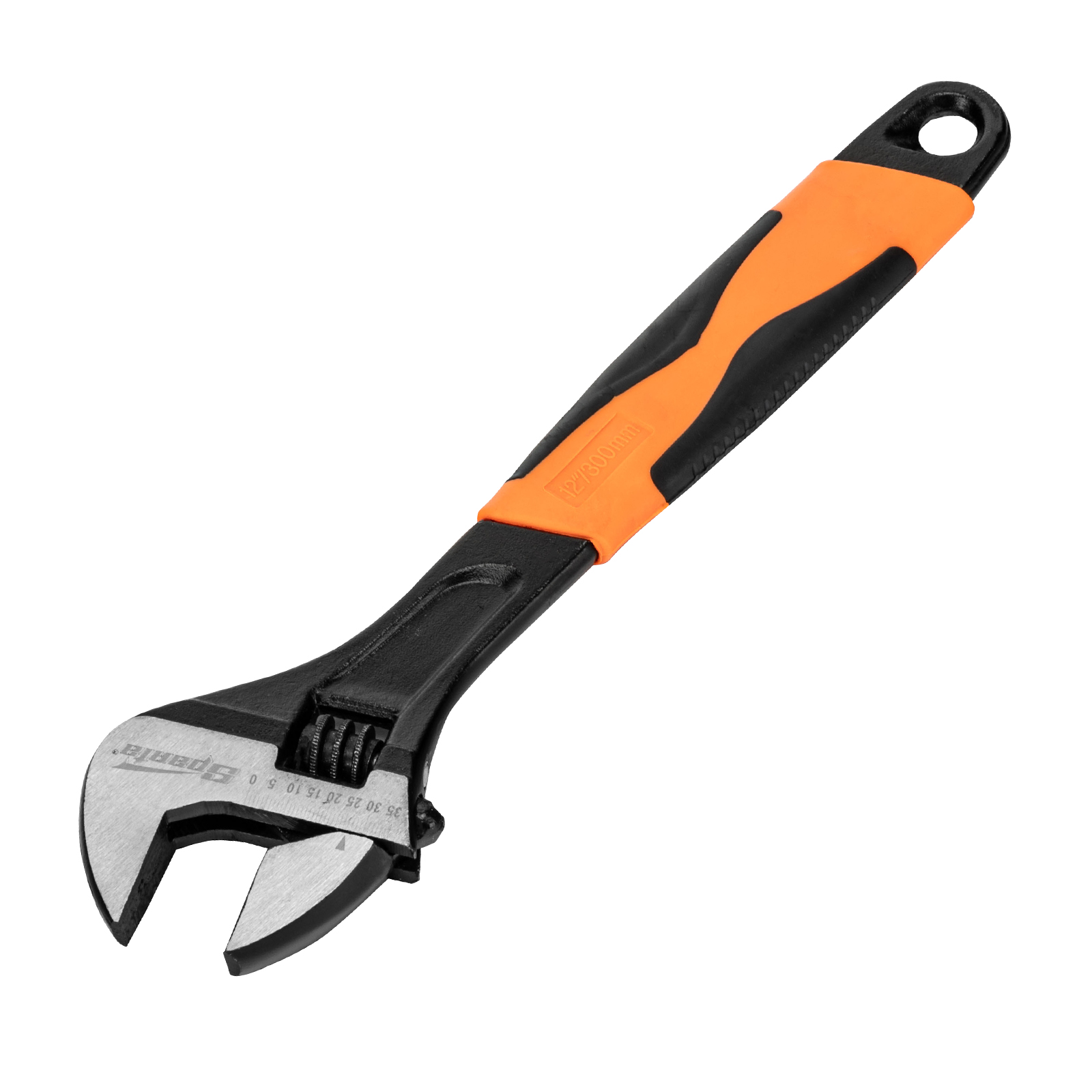 Разводной ключ Sparta 15544 длиной 300 мм, с двухкомпонентной рукояткой, имеет регулируемый зев и подходит для работы с любыми крепежными деталями диаметром до 35 мм, в том числе нестандартными. Инструмент заменяет целый комплект гаечных ключей и пригодится для бытового применения.