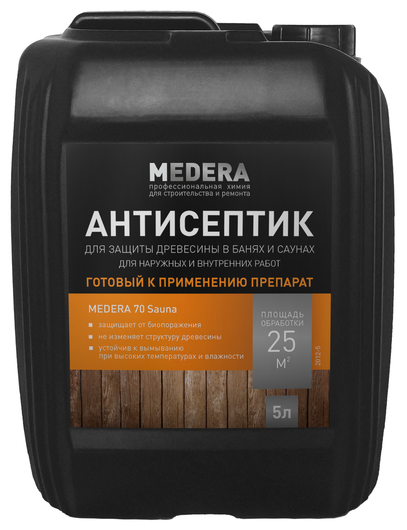 Назначение: для защиты от биопоражения на срок ≤12лет древесины, эксплуатируемой в условиях регулярного перепада температур и циклического увлажнения. Рекомендуется для обработки стен, потолков, полов, напольных решёток и др. деревянных поверхностей (за исключением полок) в банях, саунах, парных, моечных и прилегающих к ним помещениях.