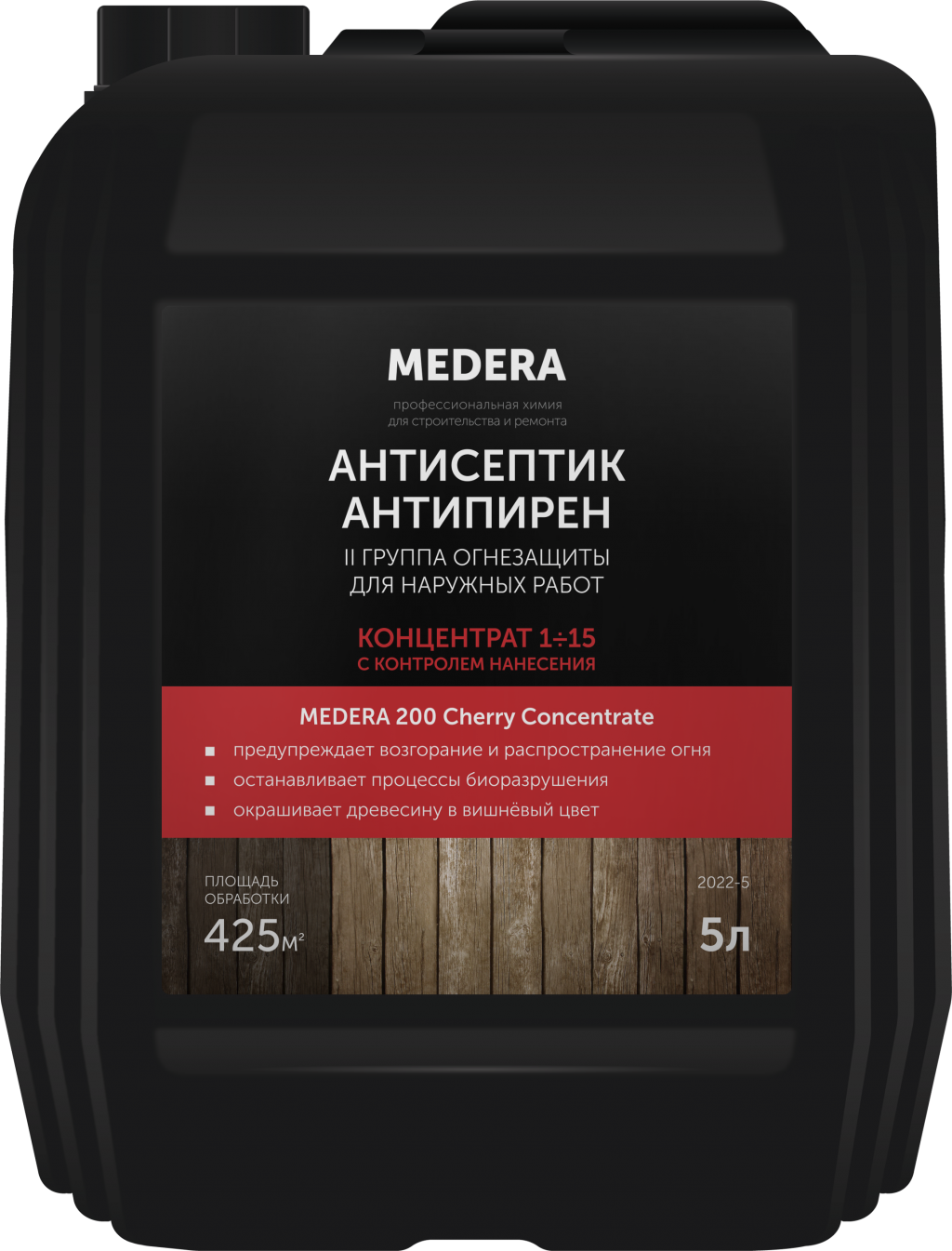 Свойства: жидкий концентрат. Предупреждает возгорание и распространение огня по поверхности. Защищает от гниения, воздействия атмосферных осадков и почвенной влаги, поражения плесневыми и деревоокрашивающими микрогрибами, водорослями, мхами, лишайниками, дереворазрушающими грибами и насекомыми-древоточцами. Останавливает процессы биоразрушения древесины. Не препятствует склеиванию и нанесению лаков, красок, эмалей и пр. Эффективно снижает усушечное растрескивание торцов крупномерных пиломатериалов. Не вымывается осадками. Окрашивает древесину в вишнёвый цвет (краситель вымываемый). Пожаро- и взрывобезопасный. Возможно выпадение нерастворимого осадка. Замерзает, после размораживания и перемешивания свойства сохраняются.