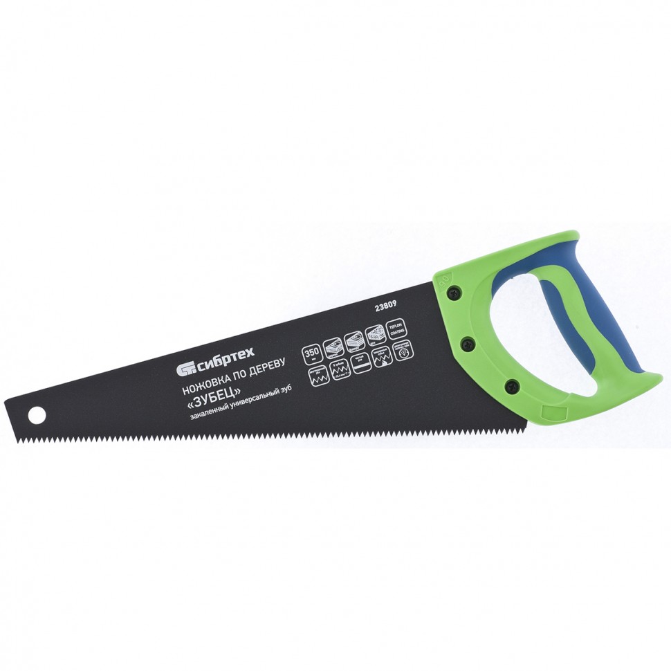Ножовка по дереву Сибртех «Зубец» 23809 с полотном длиной 350 мм, калеными зубьями с 2D-заточкой и шагом 7-8 TPI, защитным покрытием и 2-компонентной рукояткой, используется для распиливания заготовок из древесины, фанеры и ДСП. Выполняет продольный и поперечный распил. Заточка зубьев 2D дает возможность пилить по направлению как вперед, так и назад. Зубья с универсальным шагом 7-8 TPI обеспечивают оптимальную скорость и качество реза. Если режущая кромка затупится, ее можно будет заточить. Ножовка будет полезна в столярной мастерской, а также дома или на даче.