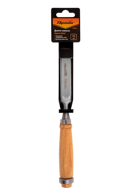 Плоское долото-стамеска 6 мм с деревянной рукояткой предназначено для столярных и плотничных работ- выборка и зачистка небольших прямоугольных пазов, снятия фасок в натуральной древесине любой твердости.Полотно стамески выполнено из конструкционной стали 45 и острозаточена. Твердость инструмента на длине 0,7 рабочей части полотна составляет 45-55 HRC. Рукоятка имеет защитное лакокрасочное покрытие и оборудована металлическим кольцом с тыльной стороны, которое предотвращает раскол дерева при ударах молотком или киянкой.