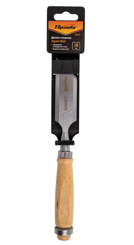 Плоское долото-стамеска 6 мм с деревянной рукояткой предназначено для столярных и плотничных работ- выборка и зачистка небольших прямоугольных пазов, снятия фасок в натуральной древесине любой твердости.Полотно стамески выполнено из конструкционной стали 45 и острозаточена. Твердость инструмента на длине 0,7 рабочей части полотна составляет 45-55 HRC. Рукоятка имеет защитное лакокрасочное покрытие и оборудована металлическим кольцом с тыльной стороны, которое предотвращает раскол дерева при ударах молотком или киянкой.