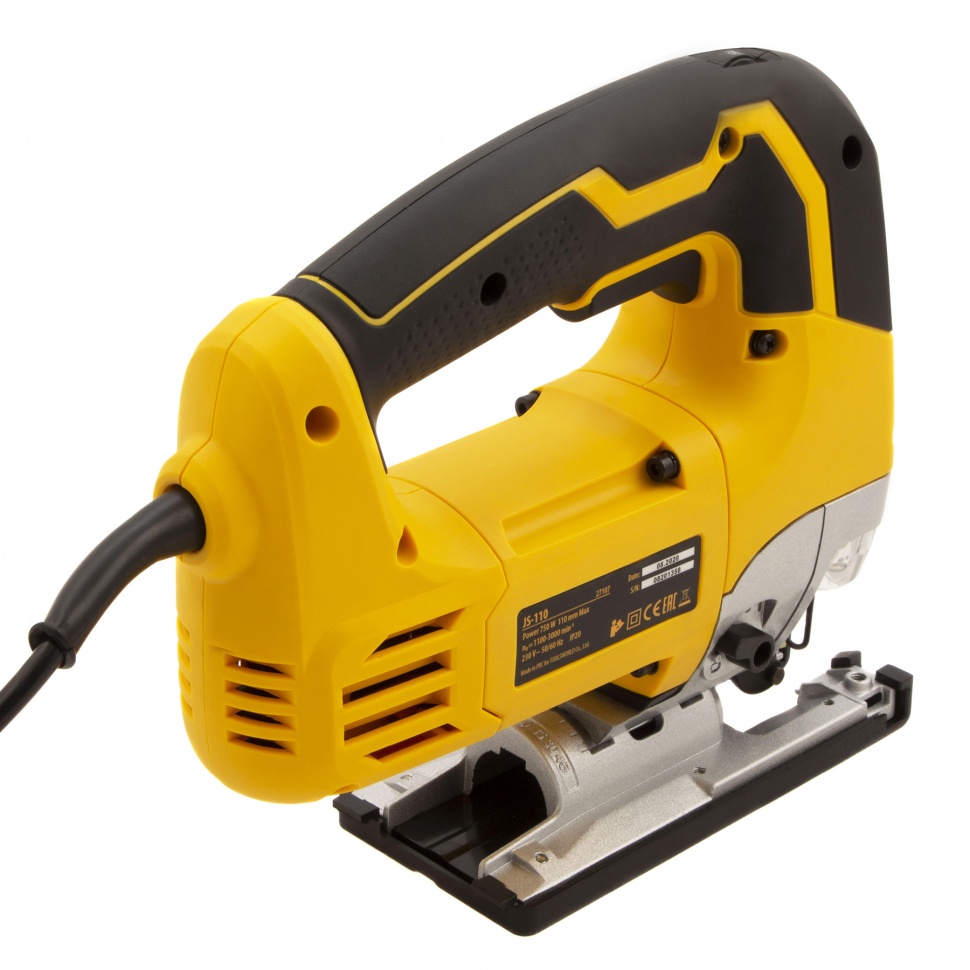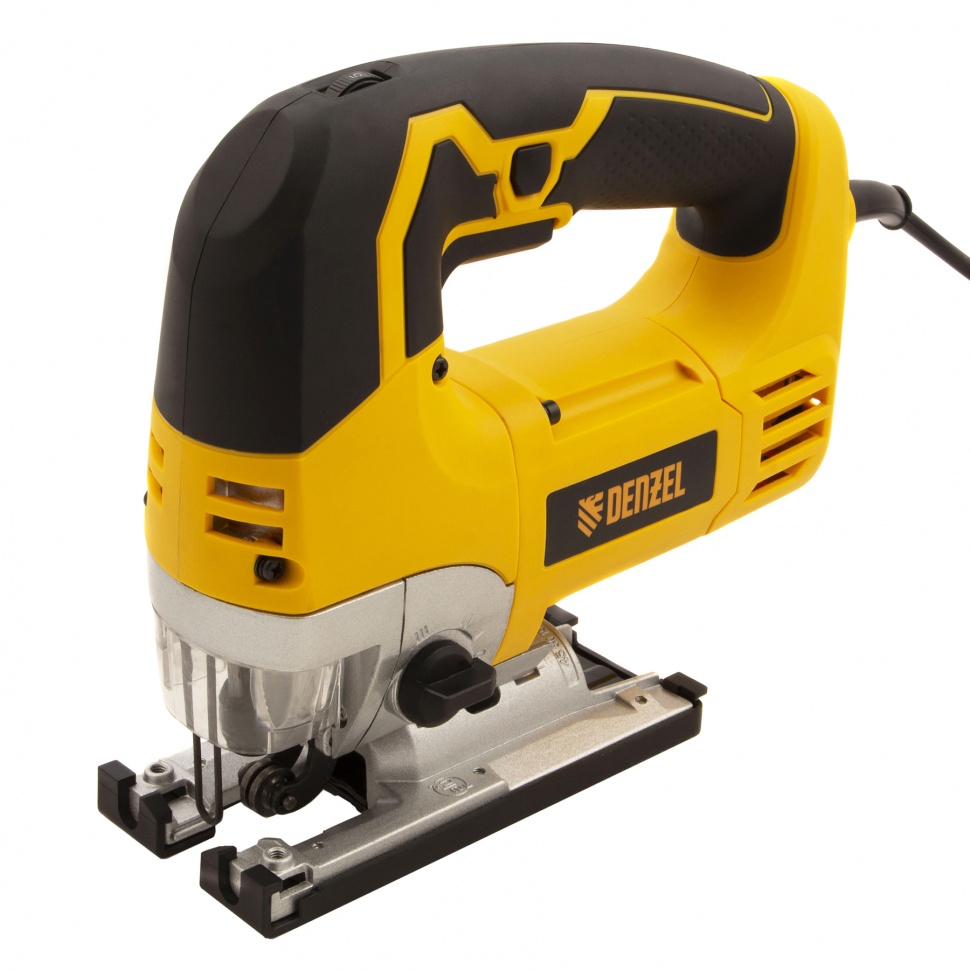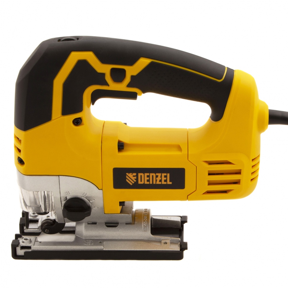 Электродвигатель Denzel обеспечивает частоту хода пильного полотна в диапазоне 1100-3000 ход/мин. Максимальная глубина пропила составляет: до 110 мм для древесины, до 25 мм для цветных металлов и до 10 мм для стали. Лобзик подключается к сети, поэтому работа не ограничена по времени.