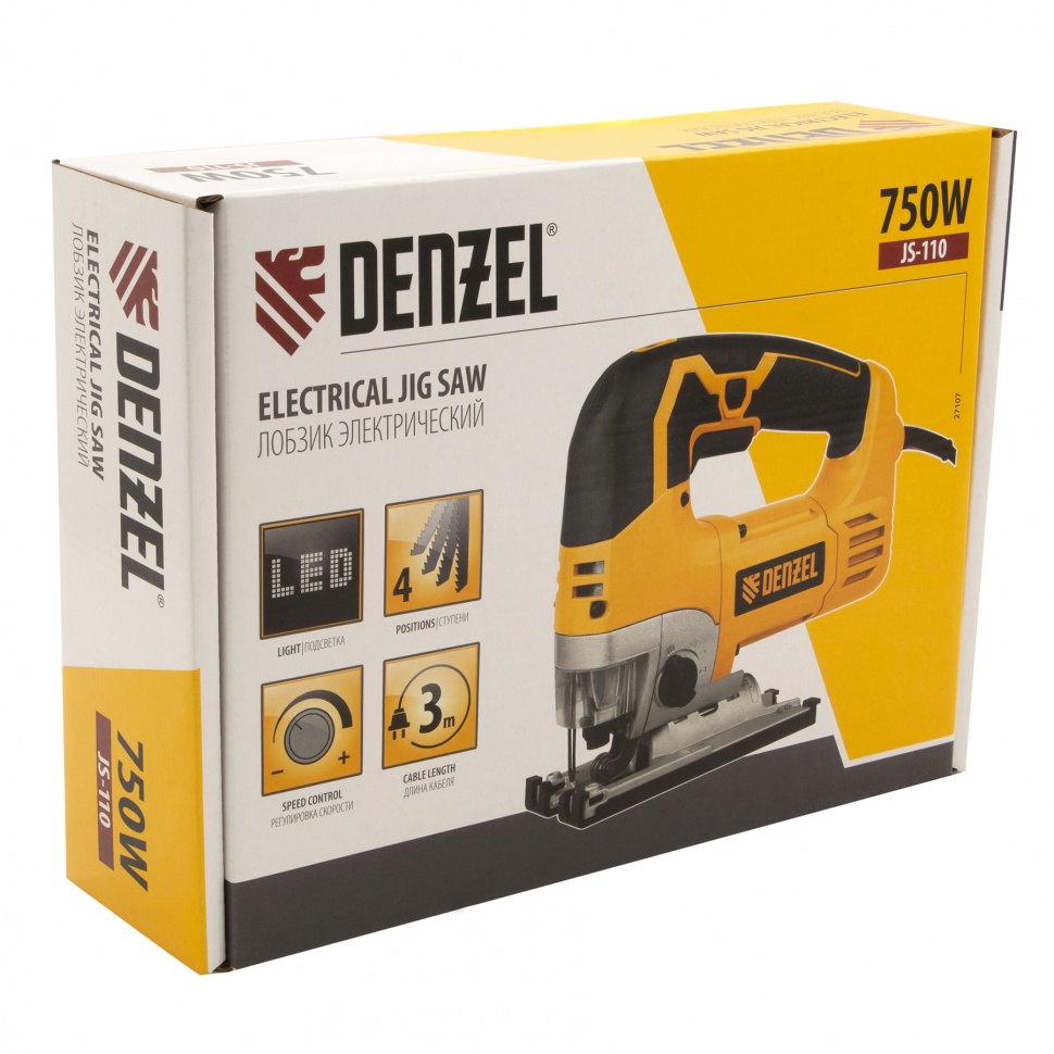 Электрический лобзик Denzel JS-110 27107 предназначен для прямого и фигурного реза листовых заготовок на основе древесины, металла, пластика, а также для выреза отверстий под раковины или варочные панели в столешницах. Это наиболее производительная модель в линейке производителя, обладающая повышенной мощностью 750 Вт.