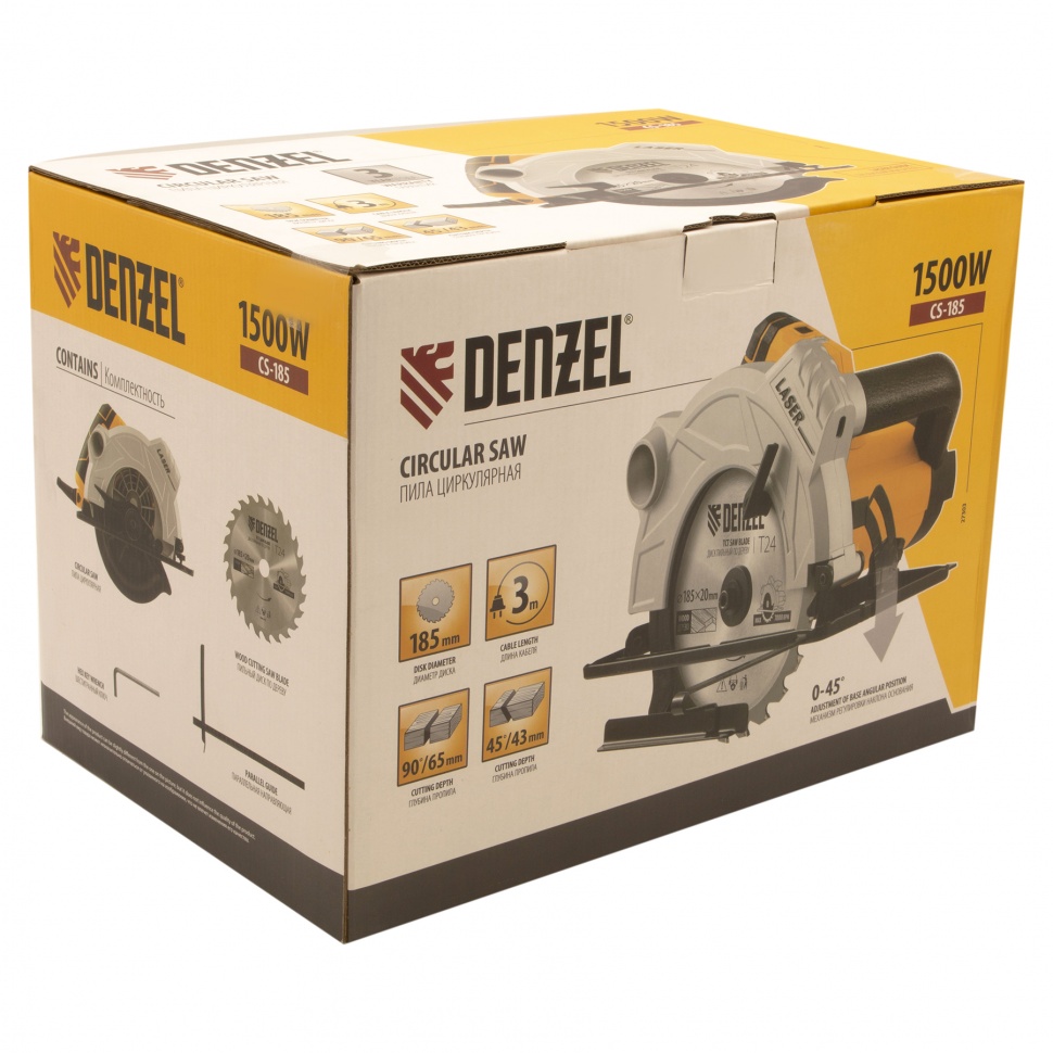 Циркулярная пила Denzel CS-185 27303 мощностью 1500 Вт с пильным диском диаметром 185 мм предназначена для раскроя фанеры, быстрого прямого реза листового материала на основе древесины, ДСП и ДВП.