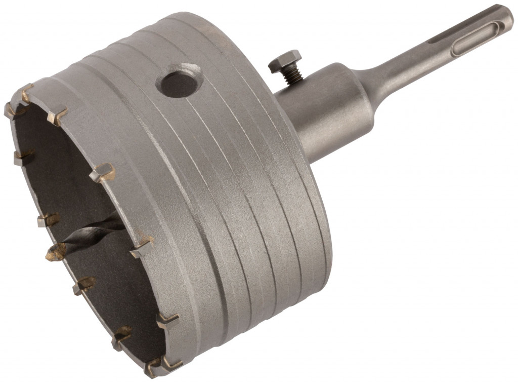 Хвостовик 110 мм. В сборе. Для перфоратора. Для ударного сверления отверстий в бетонных, кирпичных и каменных стенах. Материал: хвостовик и центрирующее сверло легированная инструментальная сталь с добавлением хрома; корпус инструментальная сталь; твердосплавные резцы из карбида вольфрама.