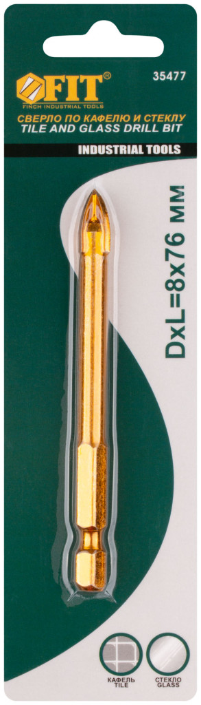 U-образный хвостовик под биту. Четыре режущие кромки. Для сверления отверстий в кафельной плитке. Повышенная производительность. Материал: инструментальная сталь с титановым покрытием, твердосплавные вставки/