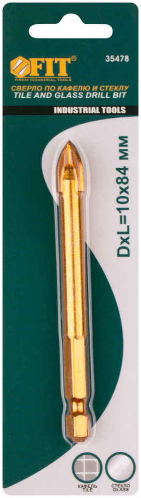 U-образный хвостовик под биту. Четыре режущие кромки. Для сверления отверстий в кафельной плитке. Повышенная производительность. Материал: инструментальная сталь с титановым покрытием, твердосплавные вставки. Упаковка: блистер.