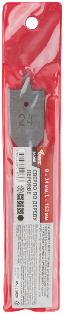 Сверло по дереву перовое 24 x 152 мм, KУРС 36088
