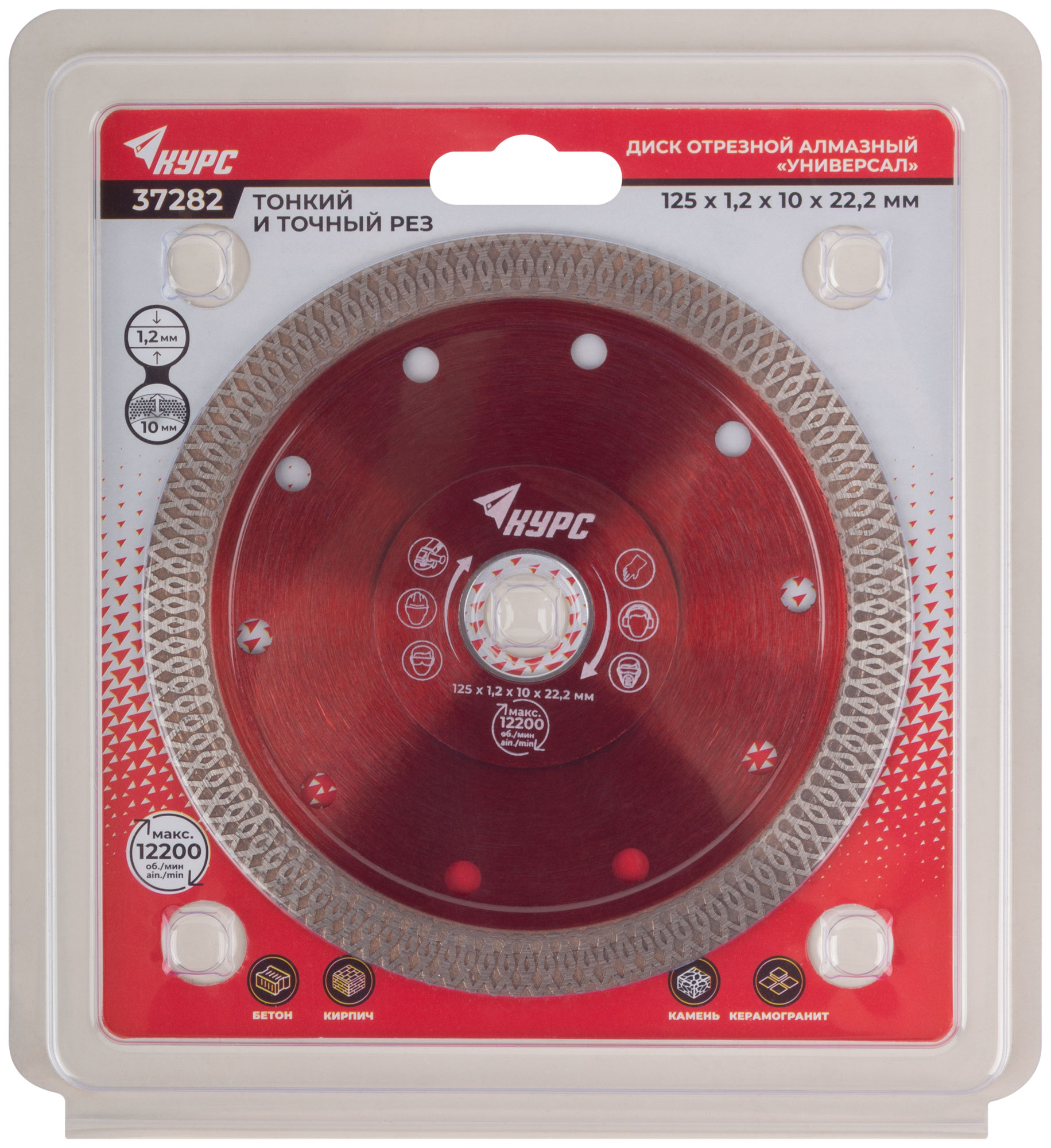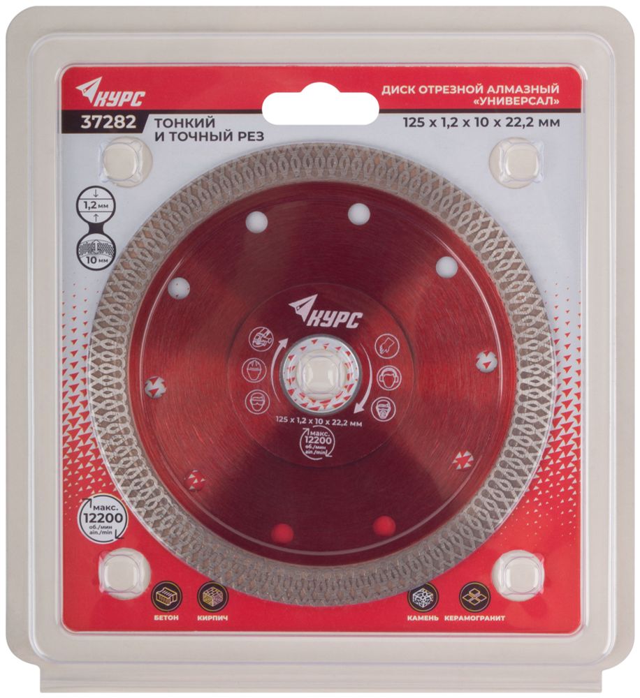 37282 Диск отрезной алмазный универсальный // тонкий рез (сухая и влажная резка) // 125 х 1,2 х 10 х 22,2мм // КУРС