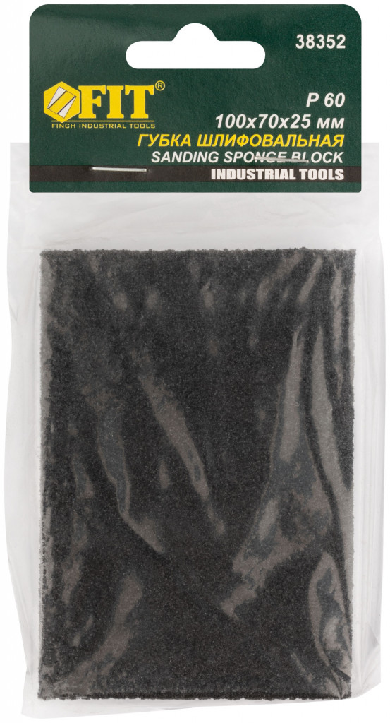 38352 Губка шлифовальная Р 60 алюминий-оксидная, средняя жесткость, 100х70х25мм FIT
