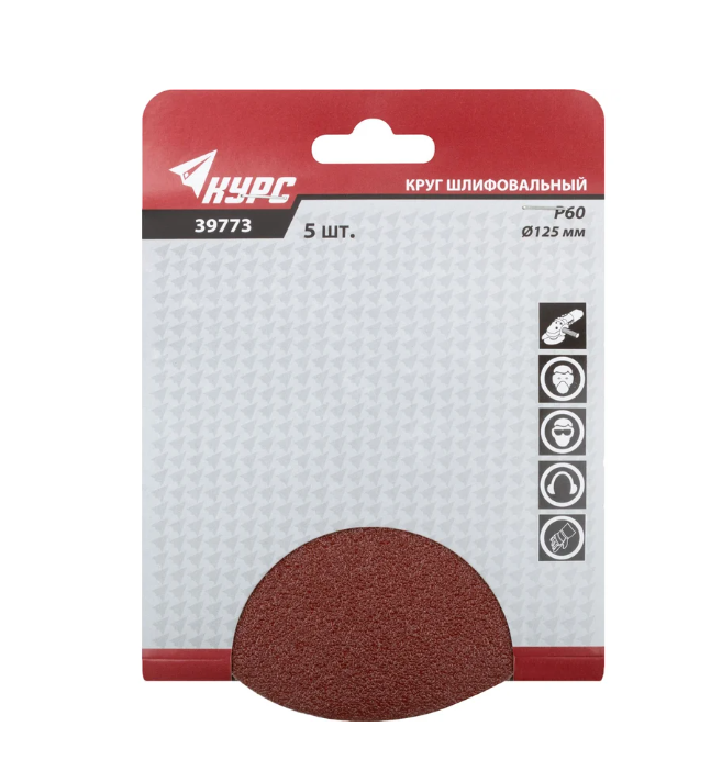 39773 КУРС Круги шлифовальные сплошные (липучка), алюминий-оксидные, 125 мм, 5 шт. Р 60