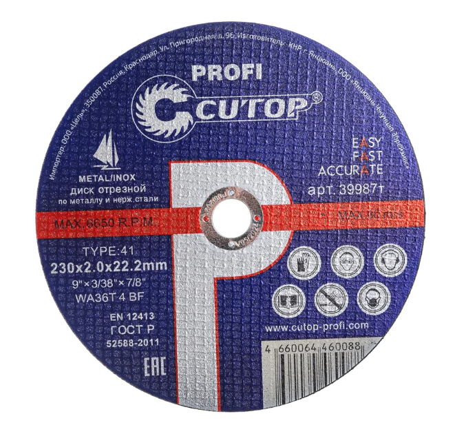 39987т Диск отрезной по металлу и нерж. стали CUTOP Profi Т41- 230 х 2.0 х 22,2 мм является сменным элементом для угловых шлифовальных машин. Применяется для реза по металлу. Диск обладает высокой производительностью и большим ресурсом работы. Оснастка изготавливается на современном оборудовании под строгим контролем качества.