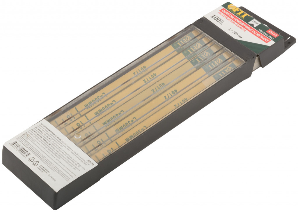 Для ножовки по металлу. Гибкое, калёный зуб. Материал: легированная 20 Cr сталь.