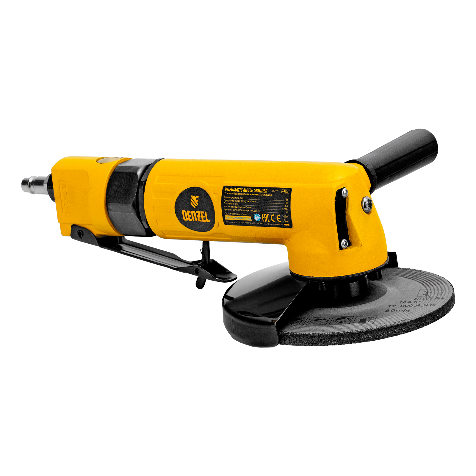 Пневматическая углошлифовальная машина Denzel AG125 57477 используется с дисками до 125 мм для шлифования, зачистки, резки деревянных, металлических, пластмассовых и других материалов. Это универсальный инструмент, востребованный в строительстве, ремонте, незаменимый для домашних мастерских и решения бытовых задач. Частота вращения диска 11000 об/мин при среднем расходе воздуха 186 л/мин обеспечивает высокую производительность и скорость работы. Оптимальная скорость редуктора позволяет быстро и качественно обрабатывать поверхности.