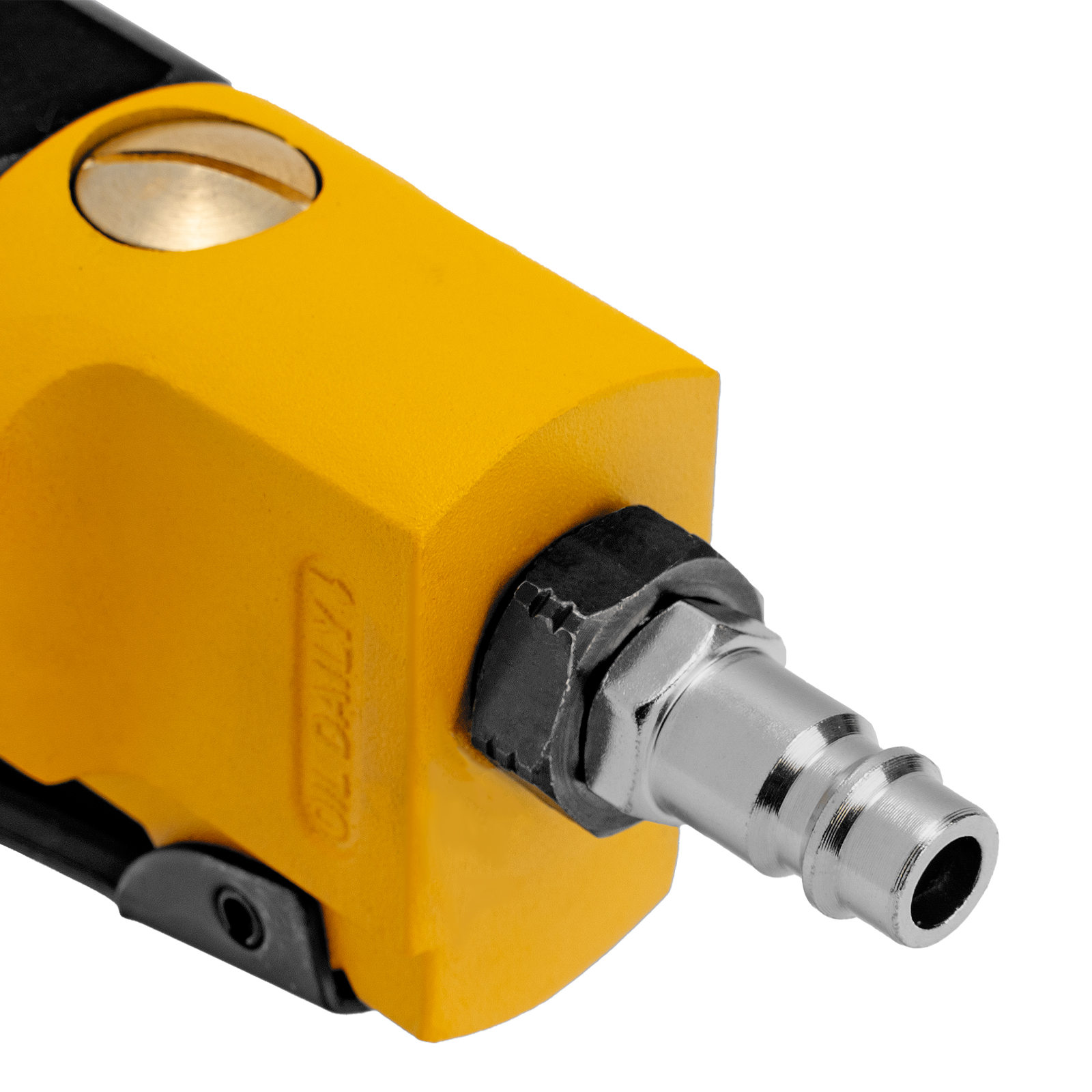 УШМ предназначена для работы при давлении 6,3 бар, расход воздуха в среднем не превышает 200 л/мин. Во время работы не забывайте использовать специальное масло ISO 46, которое можно добавлять как напрямую в инструмент, так и с помощью блока подготовки воздуха Denzel 57469, включающего в себя лубрикатор для автоматической подачи масла.