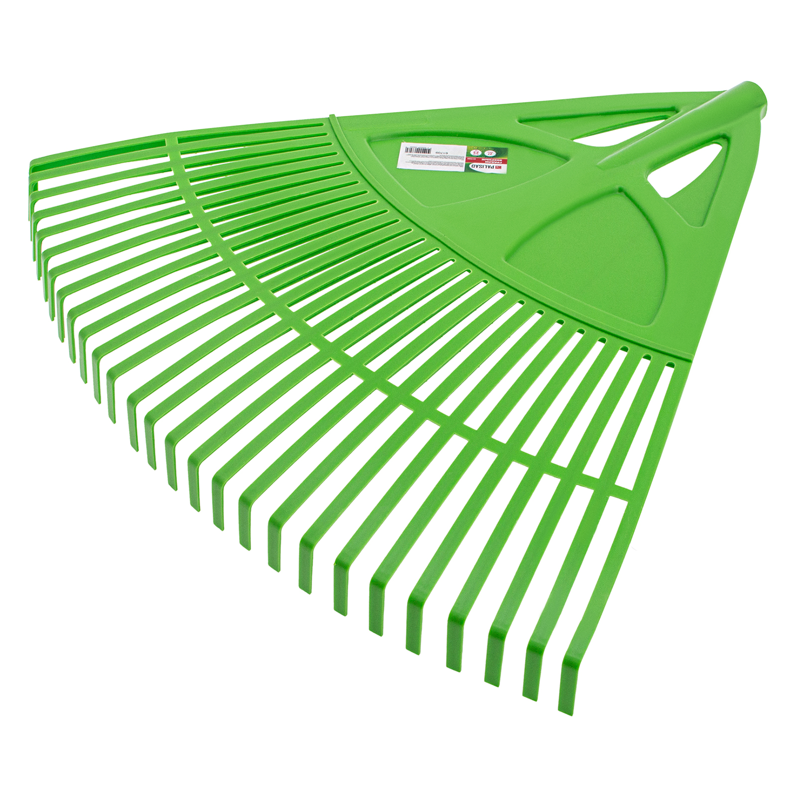 Веерные пластиковые грабли Palisad 61709 с 27 плоскими зубьями, с рабочей частью шириной 620 мм, без черенка, предназначены для уборки мелкого мусора и листьев с газонов и грядок. Благодаря плоским зубьям эффективно очищают территорию, не повреждая растительность. Грабли совместимы с черенками под тулейку диаметром 25 мм.