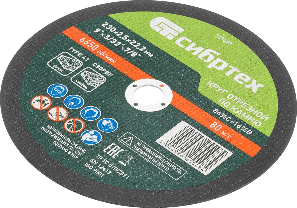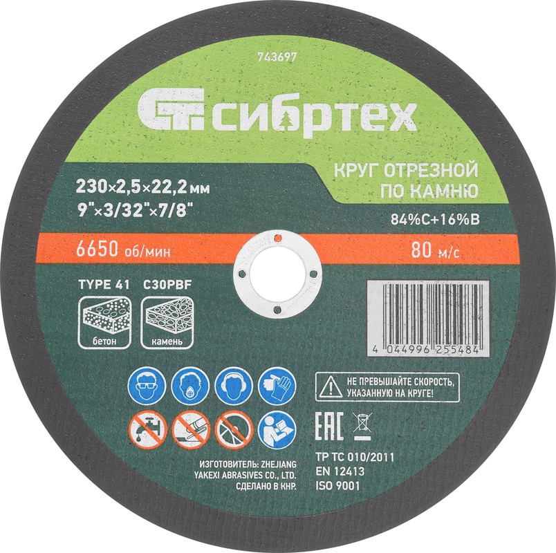 743697 Круг отрезной по камню, 230 х 2,5 х 22,2 мм, Сибртех