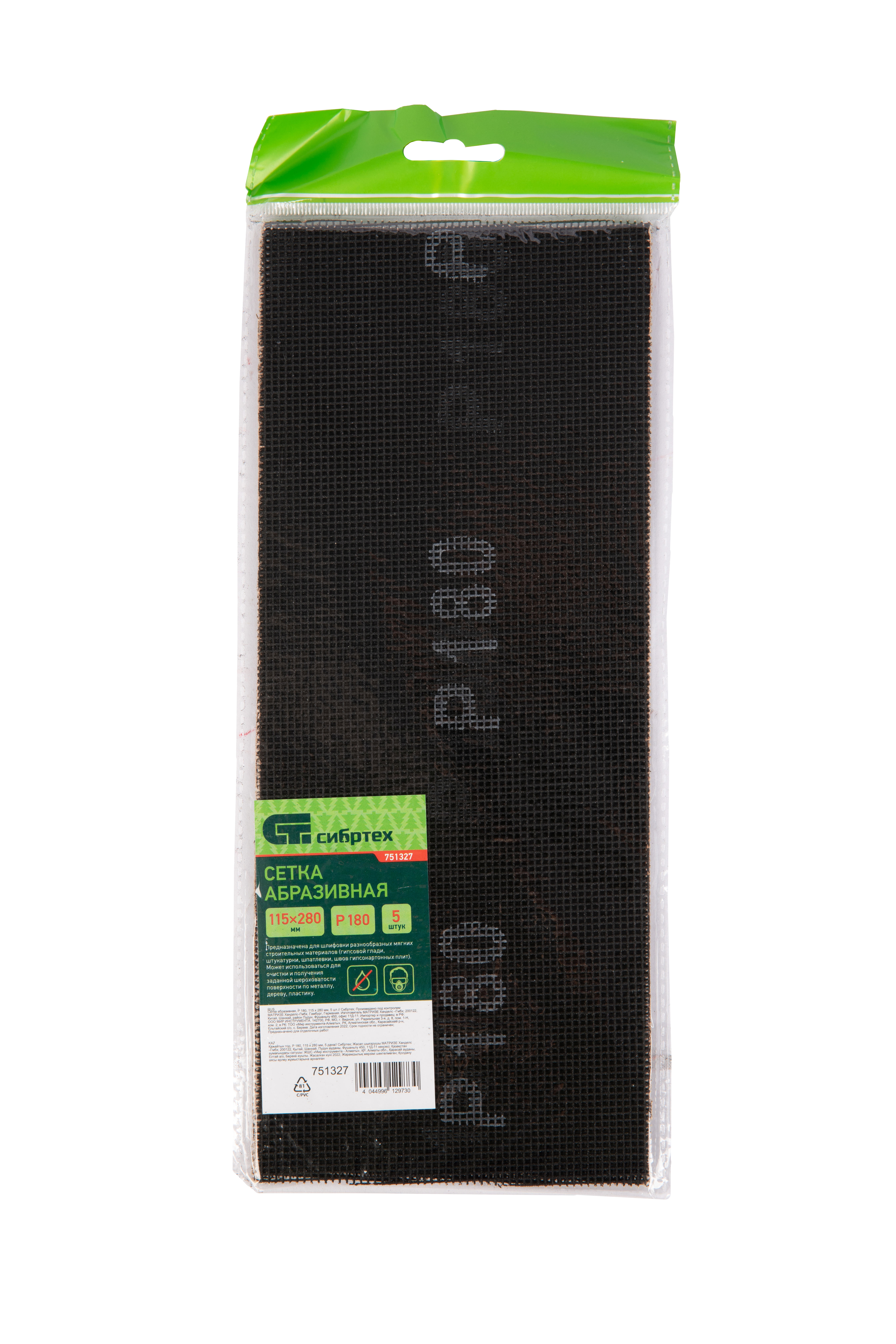 Абразивная сетка Сибртех 751327, 115 х 280 мм, с зернистостью P 180, 5 шт. в упаковке, предназначена для чистовой обработки шпаклеванных, деревянных и металлических поверхностей. Среднезернистый абразив P 180 снимает тонкий слой материала и позволяет подготовить поверхности к окрашиванию или поклейке обоев, удалить лак, краску, заусенцы и ржавчину. Полотно крепится на брусок или сеткодержатель. Прочное гибкое стекловолокно, из которого изготовлена сетка, обеспечивает ее износостойкость и долговечность.