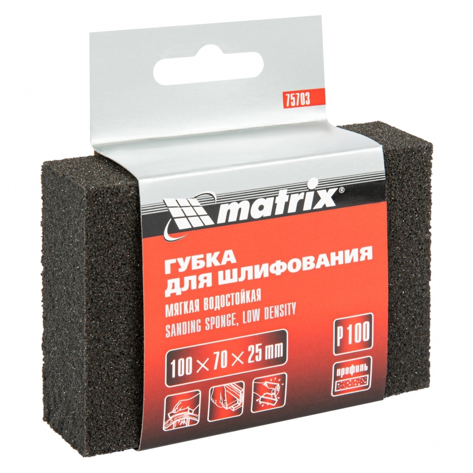 Мягкая губка для шлифования Matrix 75703, 100 х 70 х 25 мм, с зернистостью P 100, используется для обработки деревянных, металлических, пластмассовых и шпатлеванных поверхностей. Позволяет удалять старые лакокрасочные покрытия и ржавчину, применяется при ремонте, строительстве, производстве мебели, кузовных работах, а также в быту. Губка покрыта абразивным слоем с 4-х сторон, поэтому прослужит долго.