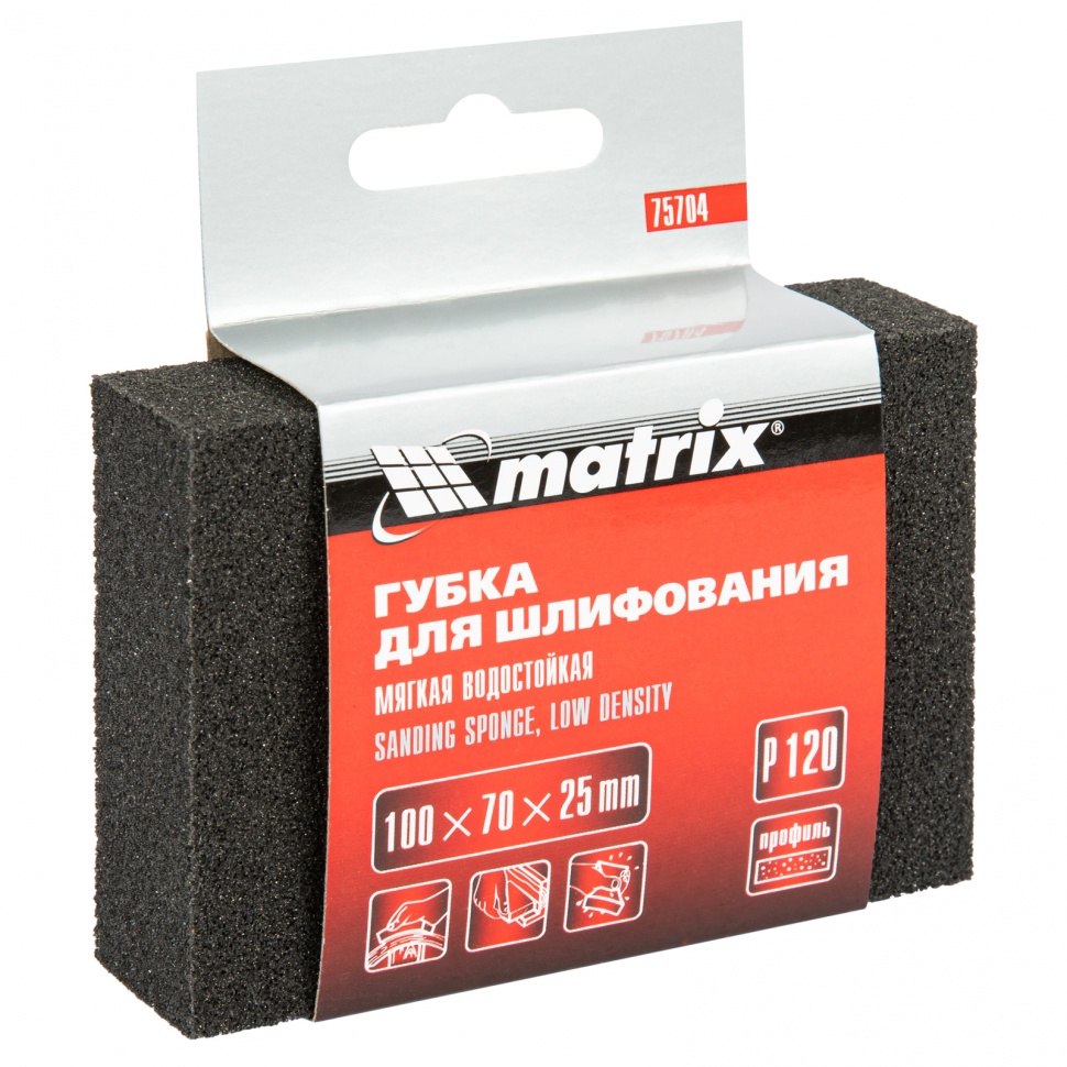 Мягкая губка для шлифования Matrix 75704, 100 х 70 х 25 мм, с зернистостью P 120, используется для обработки деревянных, металлических, пластмассовых и шпатлеванных поверхностей. Позволяет удалять старые лакокрасочные покрытия и ржавчину, применяется при ремонте, строительстве, производстве мебели, кузовных работах, а также в быту. Губка покрыта абразивным слоем с 4-х сторон, поэтому прослужит долго.