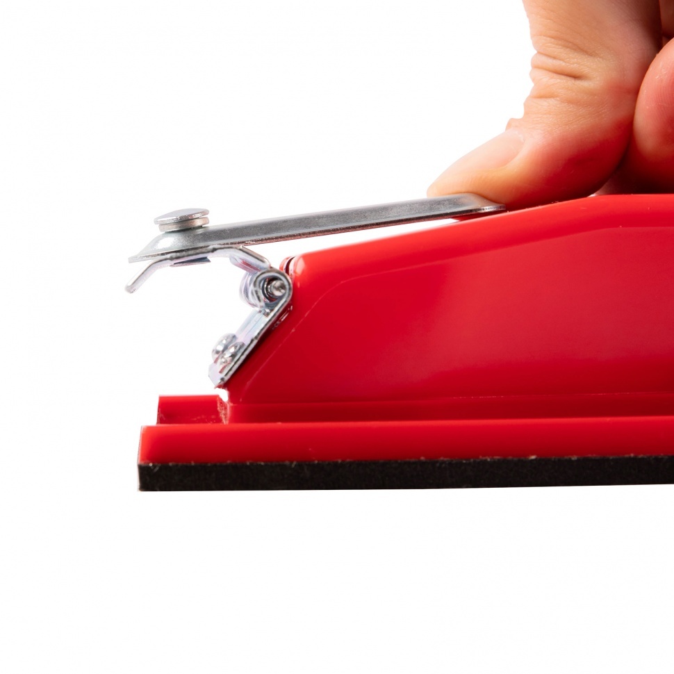 Быстрозажимной механизм позволяет быстро и надежно зафиксировать шлифовальный материал.