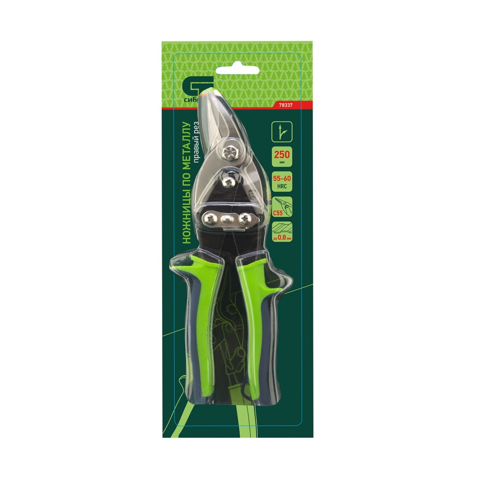 Ножницы Сибртех 78337 длиной 250 мм, из стали С55, с двухкомпонентными рукоятками, используются для правого реза профильного и листового металла. Они найдут применение в хозяйстве в процессе ремонтных и монтажных работ с материалами толщиной до 0,8 мм.