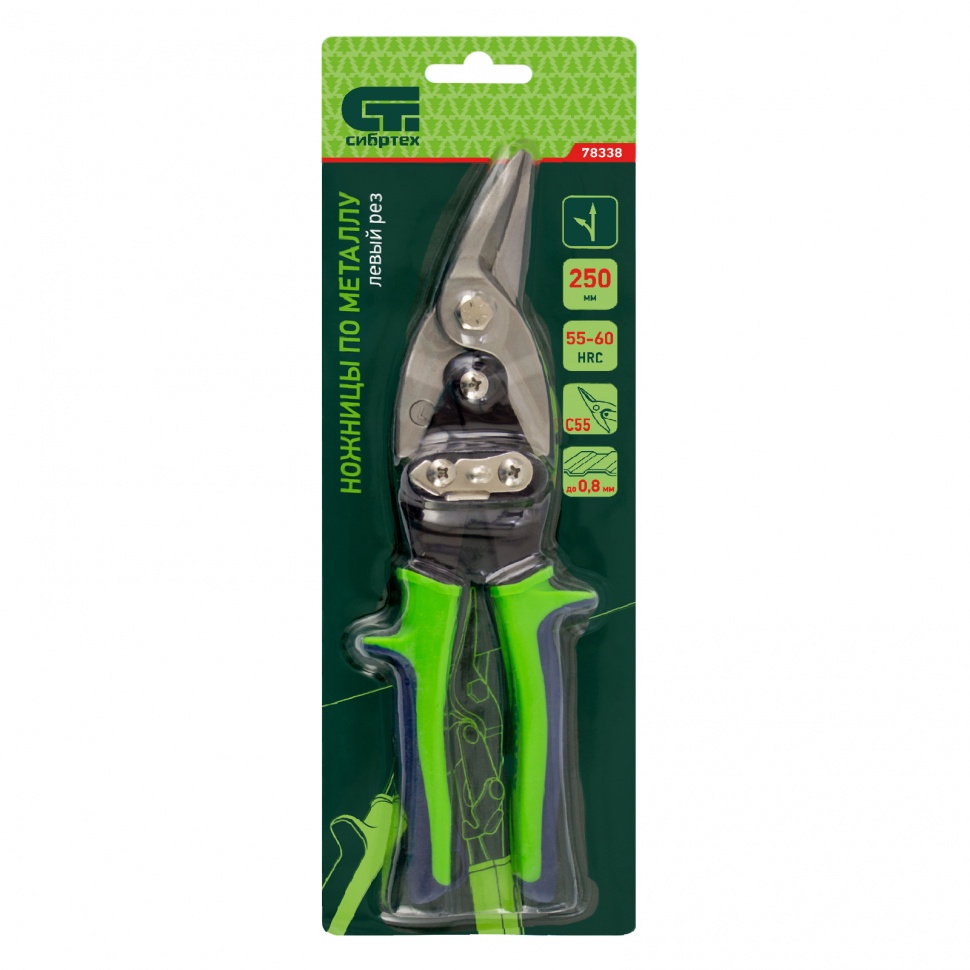 Ножницы Сибртех 78338 длиной 250 мм, из стали С55, с двухкомпонентными рукоятками, используются для левого реза профильного и листового металла. Они найдут применение в хозяйстве в процессе ремонтных и монтажных работ с материалами толщиной до 0,8 мм.