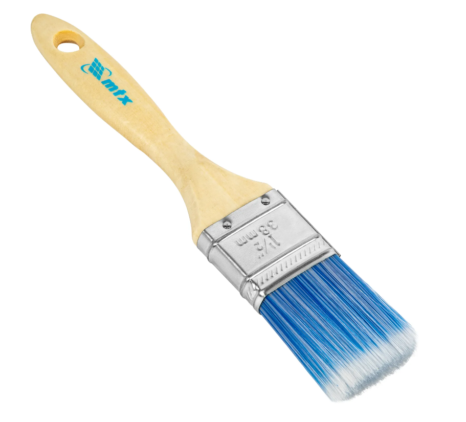 Плоская кисть MTX «Евро» 83070 шириной 1,5", с искусственной щетиной и деревянной ручкой, предназначена для малярных работ. Оптимальна для работы с водорастворимыми ЛКМ (акриловыми, латексными, водоэмульсионными), удобна для обработки узких и труднодоступных мест. Кисть подходит для профессионального использования.