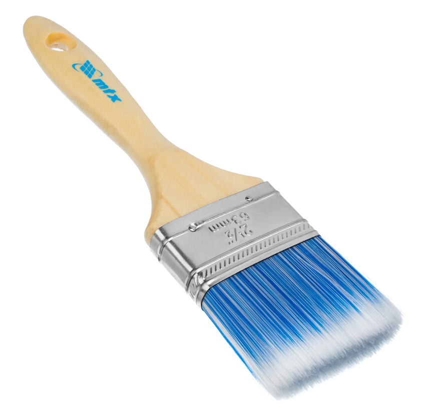Плоская кисть MTX «Евро» 83072 шириной 2,5", с искусственной щетиной и деревянной ручкой, предназначена для малярных работ. Оптимальна для работы с водорастворимыми ЛКМ (акриловыми, латексными, водоэмульсионными), удобна для обработки участков небольшой площади. Кисть подходит для профессионального использования.