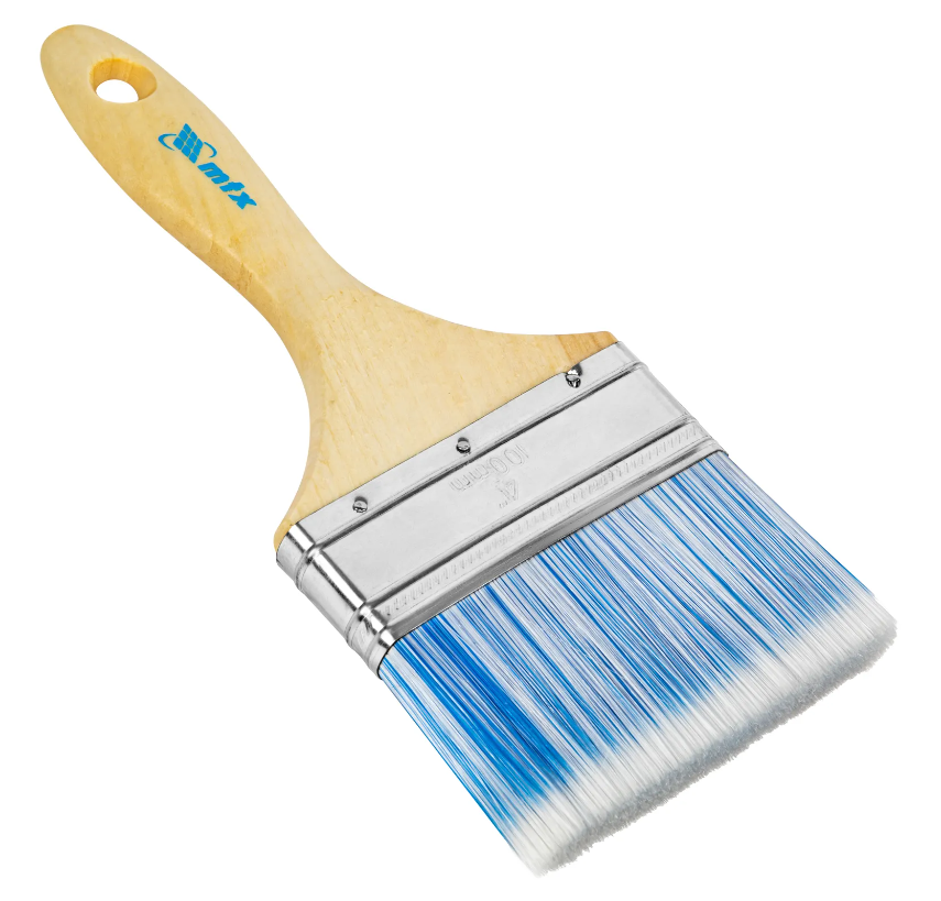 Плоская кисть MTX «Евро» 83074 шириной 4", с искусственной щетиной и деревянной ручкой, предназначена для малярных работ. Оптимальна для работы с водорастворимыми ЛКМ (акриловыми, латексными, водоэмульсионными), удобна для обработки участков небольшой площади. Кисть подходит для профессионального использования.