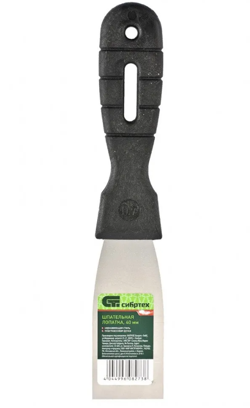 Шпательная лопатка Сибртех 85430 с полотном шириной 40 мм из нержавеющей стали и пластмассовой ручкой рассчитана на нанесение, выравнивание и сглаживание строительных растворов и смесей. Актуальна при проведении ремонтно-отделочных работ, подходит для начинающих и профессиональных мастеров.