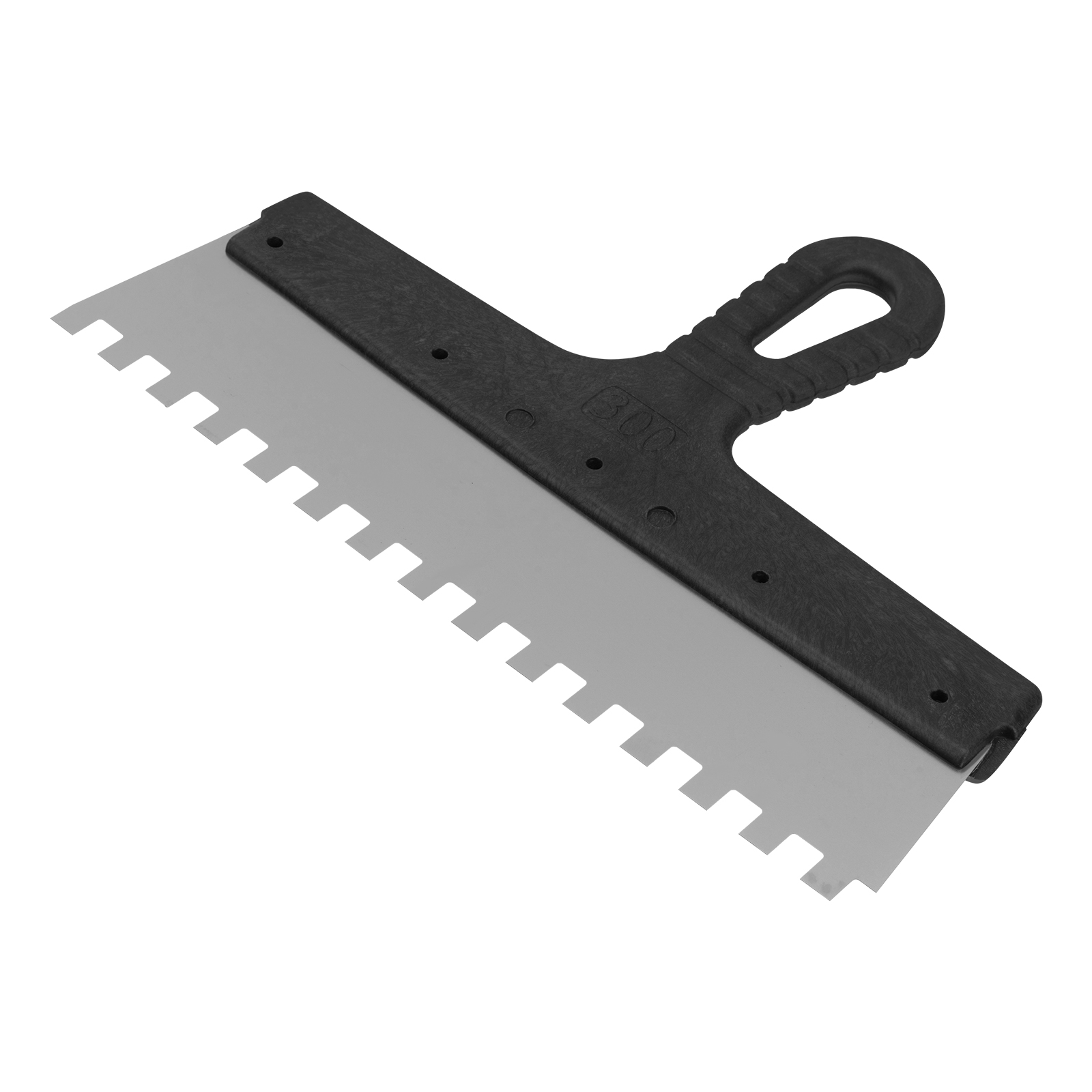 85501 Шпатель из нержавеющей стали, пластмассовая ручка, зуб 10 х 10 мм // 300 мм // Сибртех