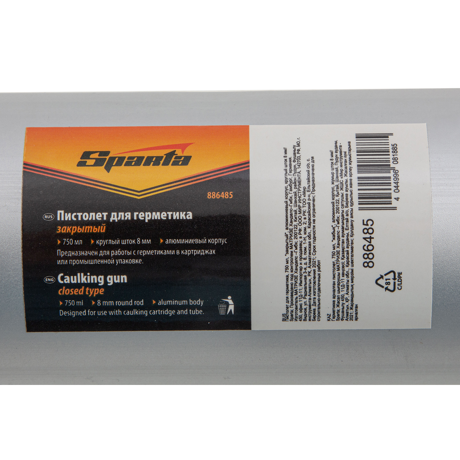 «Закрытый» пистолет для герметика Sparta 886485, 750 мл, с алюминиевым корпусом, с круглым штоком диаметром 8 мм, используется для заполнения пустот, герметизации швов и соединения деталей акриловым, силиконовым и другими герметиками. Рассчитан на объем смеси 750 мл, поэтому можно проводить работы большого объема без дозаправки пистолета или установки нового картриджа. Инструмент подходит для работы с герметиками в мягкой упаковке. Пистолет весит 725 г, поскольку рукоятка и корпус изготовлены из алюминиевого сплава. Будет полезен на строительной площадке, а также во время ремонта.