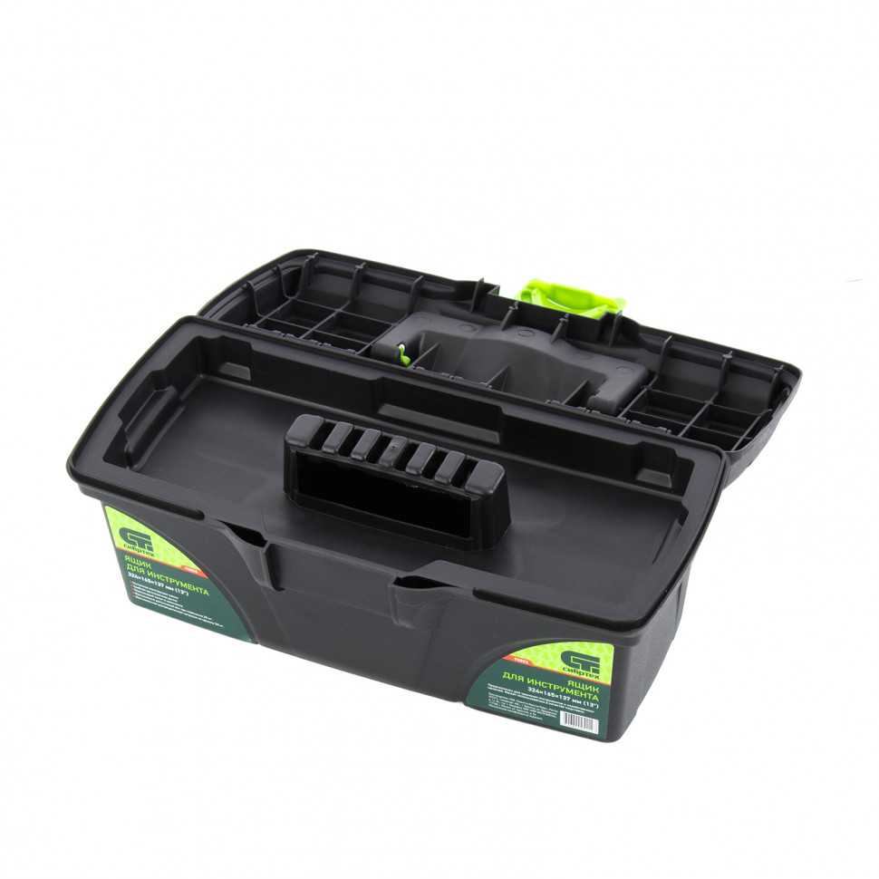 Ящик для инструмента Сибртех 90803 из пластика, размером 324 х 165 х 137 мм (длина 13""), — удобное вместилище для инструментов, бытовых мелочей, рыболовных снастей. На крышку нанесена измерительная шкала в сантиметрах и дюймах, поэтому можно проводить измерения, даже если под рукой нет линейки. Ящик пригодится в поездке, на рыбалке, а также дома, на даче или в гараже.