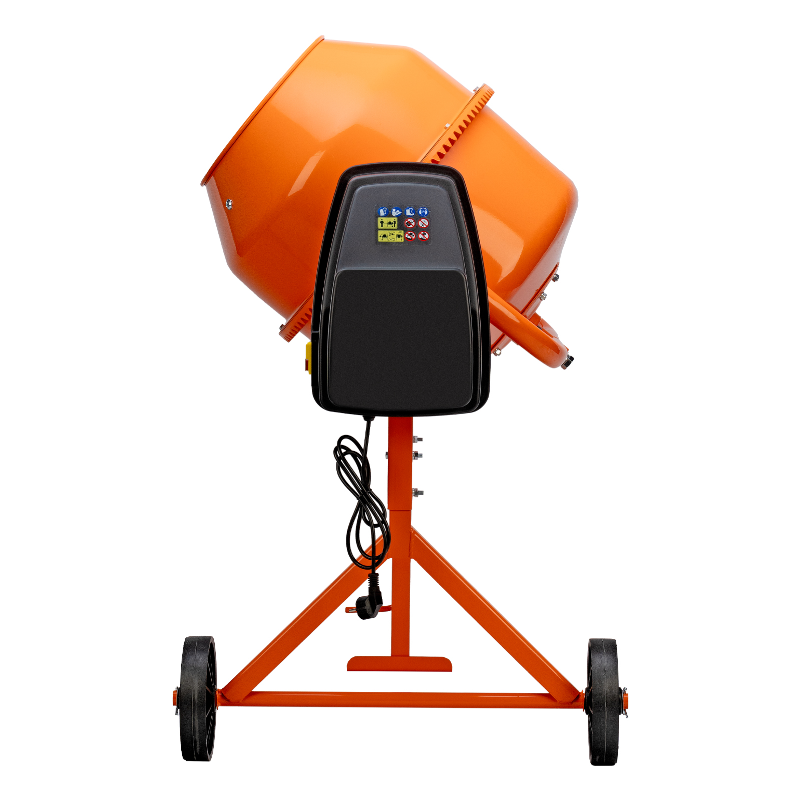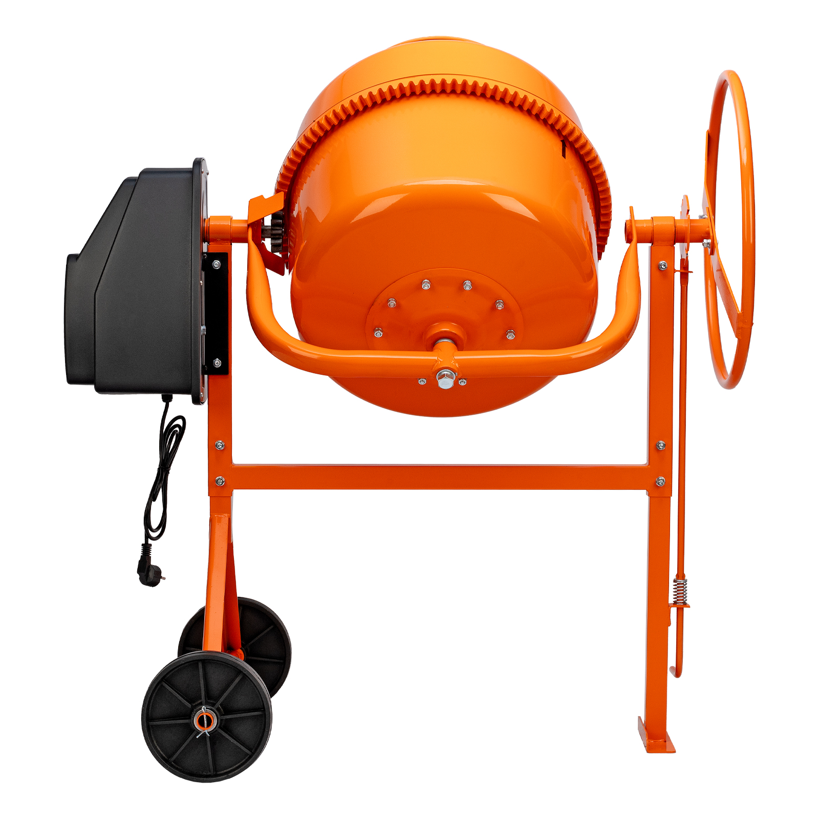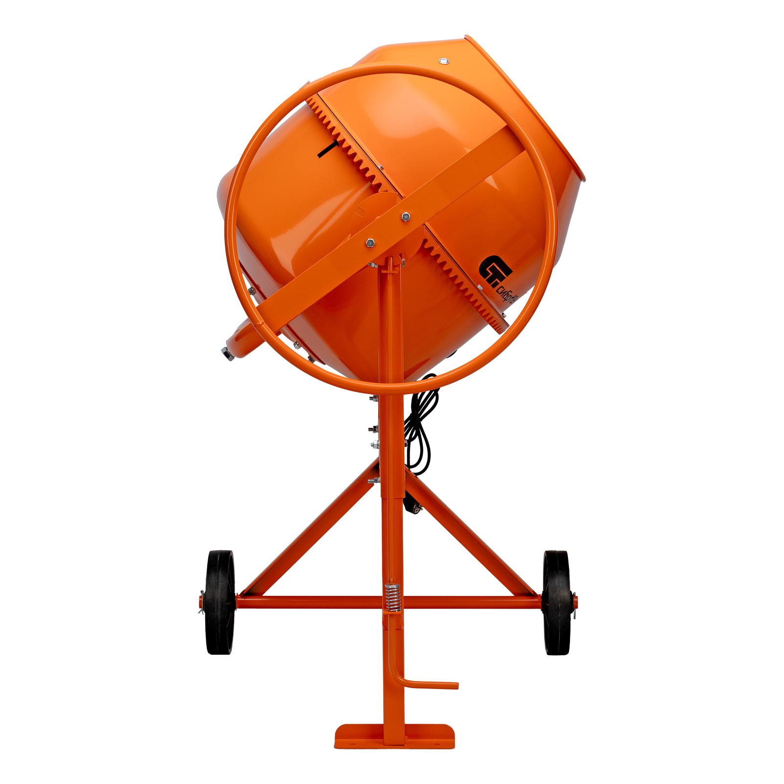 Мобильность — маневренные колеса из прочного пластика облегчают перемещение бетоносмесителя по неровной земле, что особенно удобно на строительной площадке.