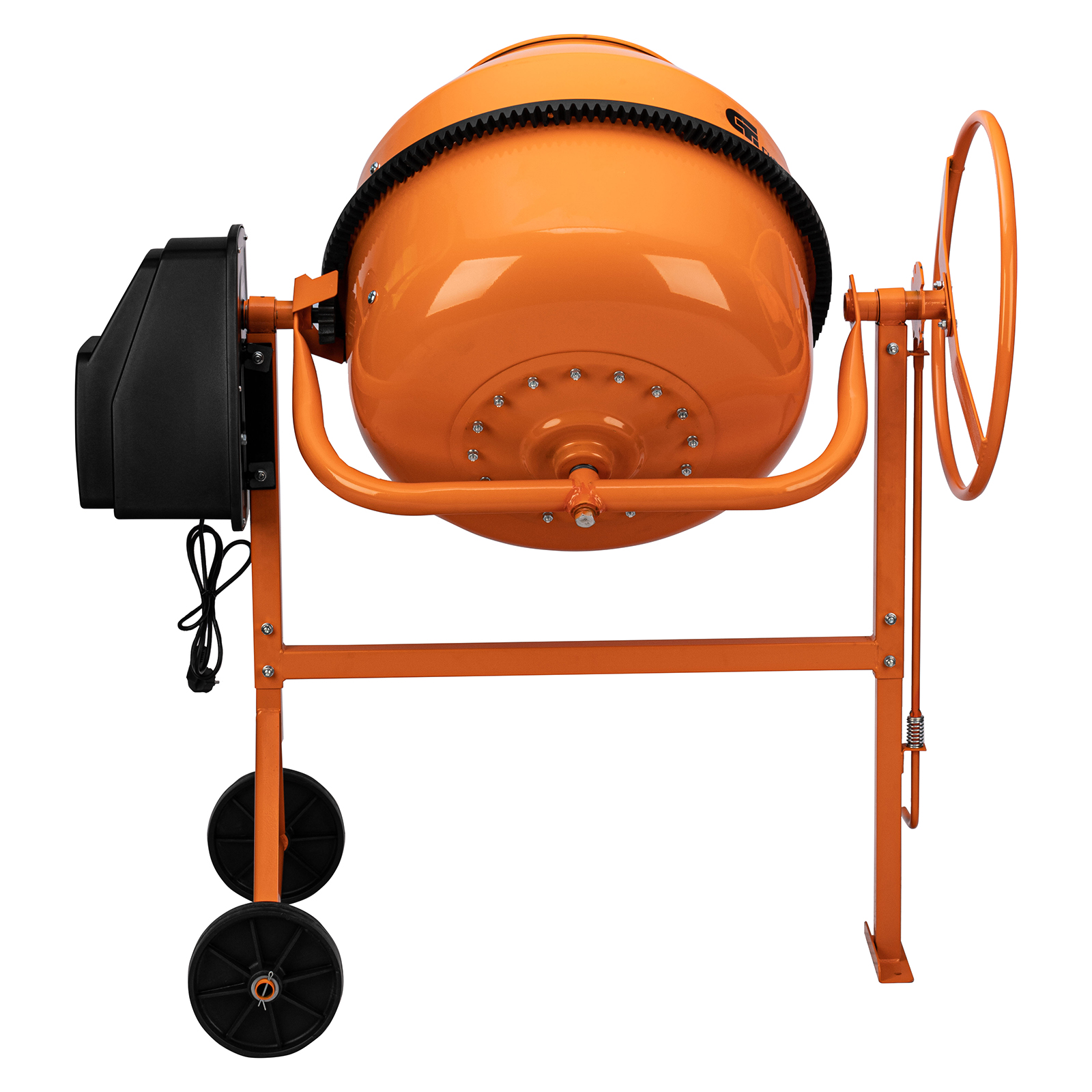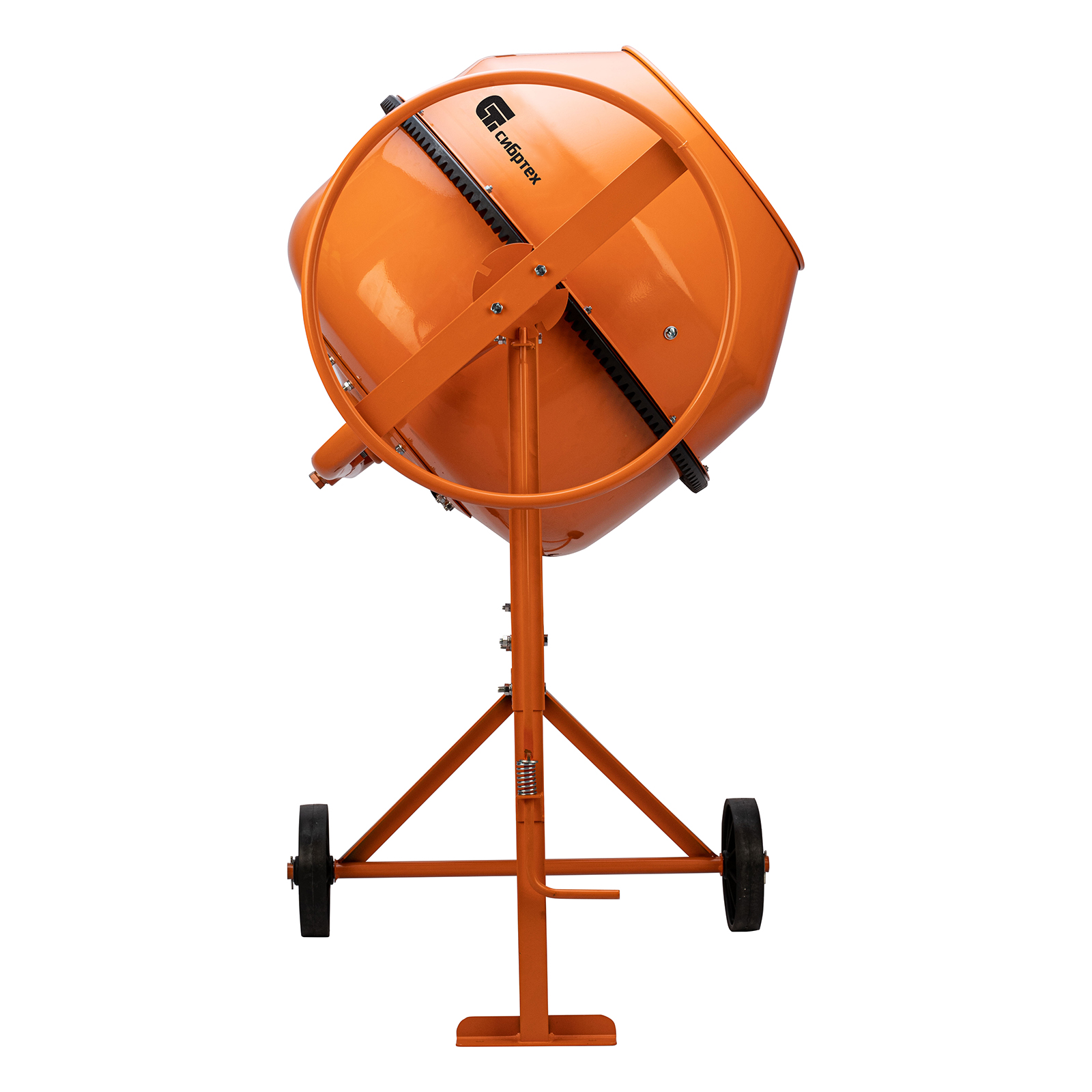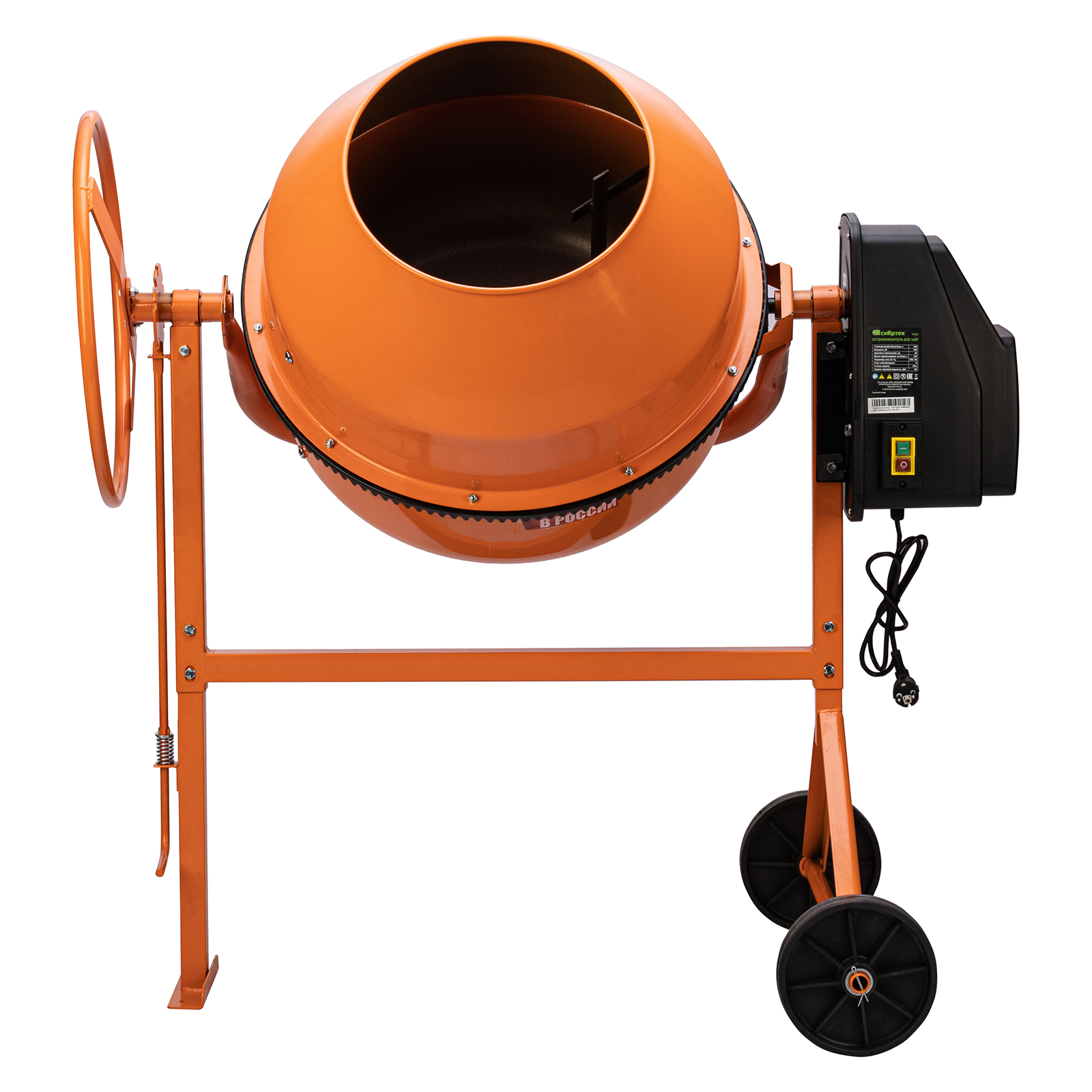 Продуманная конструкция — увеличенный диаметр колес обеспечивает устойчивость бетоносмесителя во время работы, а также упрощает его перемещение по рабочей площадке.