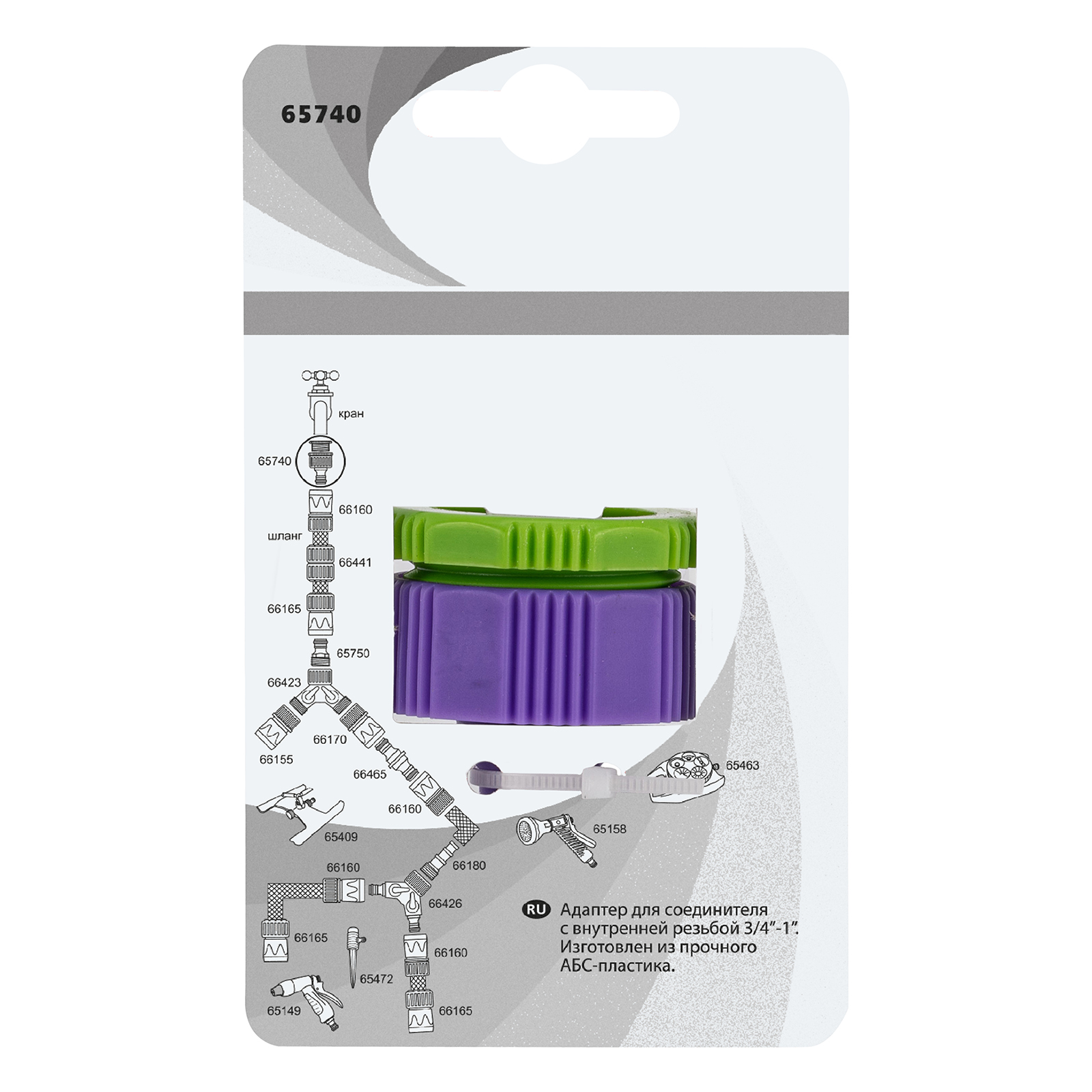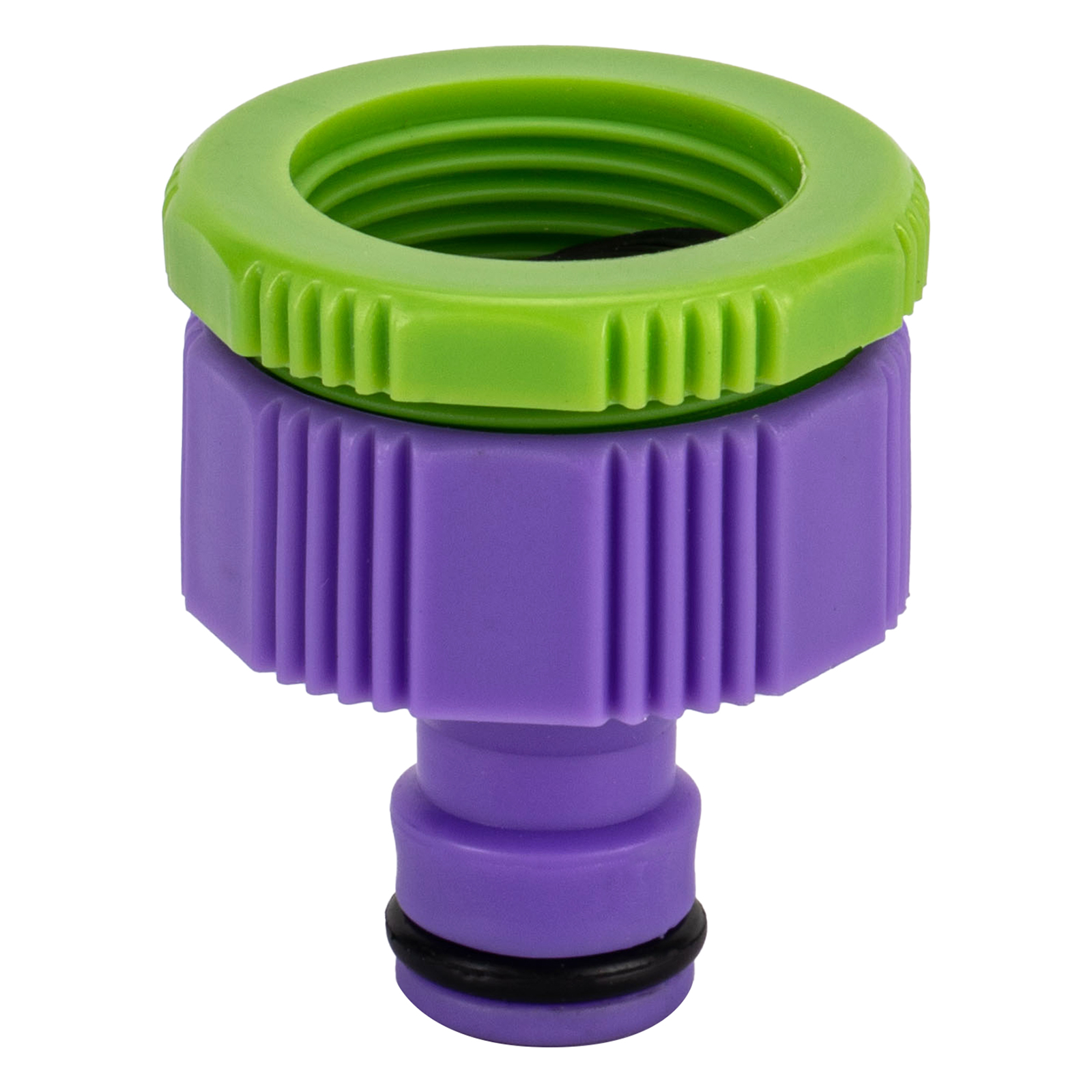 Пластмассовый адаптер Palisad 65740 с внутренней резьбой, подходит для кранов, распределителей, распылителей с резьбовыми соединениями диаметром 3/4 — 1 дюйм. Конструкцией предусмотрен переходник, позволяющий устанавливать изделие на выходы разного диаметра. Адаптер используют для подключения поливочной системы к источнику водоснабжения, поэтому он будет полезен на дачном участке.