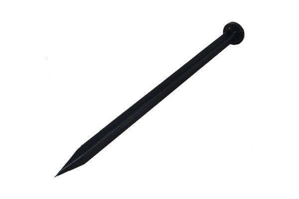 Пластиковые тротуарные бордюры фиксируются с помощью специальных анкеров – это просто, быстро и экономично. Нет необходимости рыть дополнительные траншеи или заниматься трудоемким бетонированием. По конструкции напоминает обычный длинный металлический гвоздь, но изготовленный из прочного черного пластика.