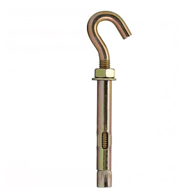 Анкер состоит из металлической втулки, конусной гайки, крючка с метрической резьбой, гайки и плоской шайбы.