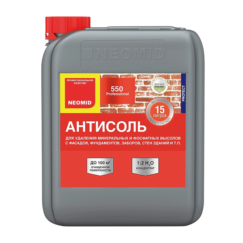 NEOMID 550 предназначен для удаления минеральных высолов различного происхождения и состава с кирпича, природного и искусственного камня, бетона и т.п.