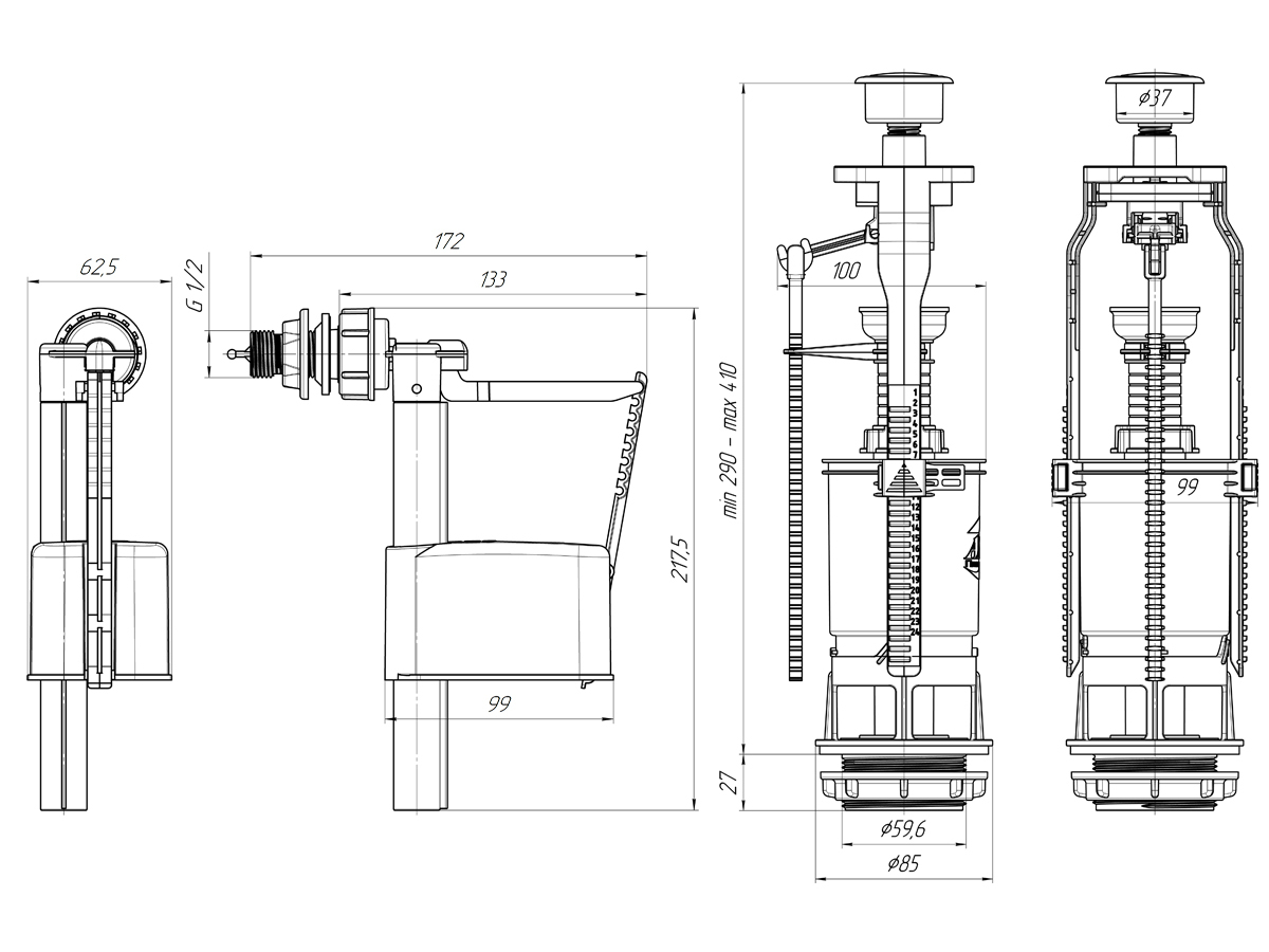Арматура к смыв. бачку Кноп. бел бок/подв. WC6050 ЭКОНОМ
