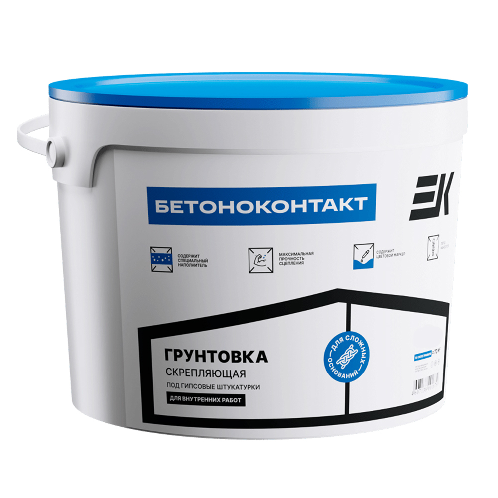 Грунтовка ЕК БЕТОНОКОНТАКТ предназначен для предварительной обработки плотных, гладких, слабо впитывающих влагу оснований (монолитного бетона, бетонных блоков, цементных штукатурок) перед нанесением плиточных клеев, гипсовых и цементных штукатурок с целью увеличения адгезии.