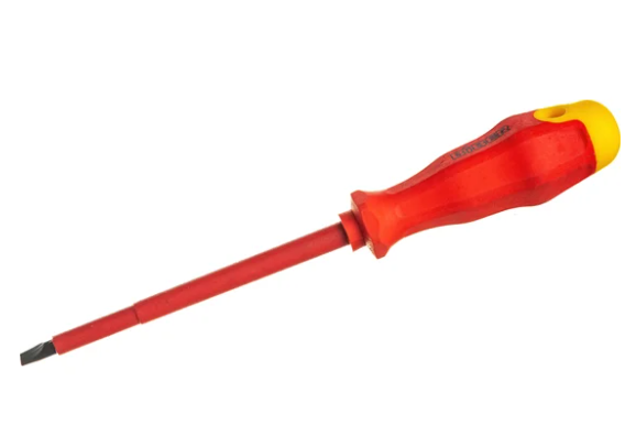 Предназначена для монтажа шлицевого крепежа. Плоский шлиц. Хромованадиевая сталь повышенной твердости. Эргономичная обрезиненная противоскользящая рукоятка. Магнитный наконечник. Диэлектрическое покрытие стержня.