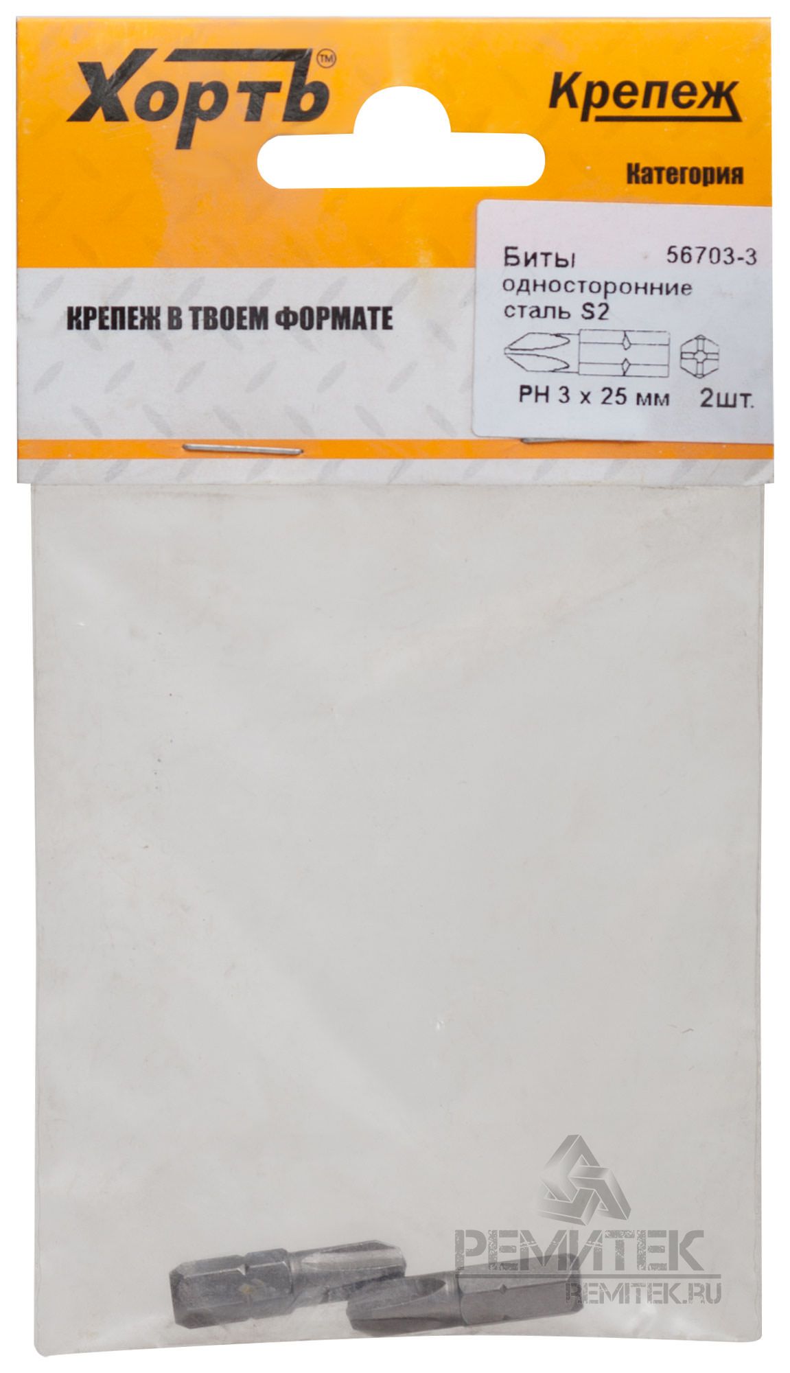 56730-3 Биты односторонние сталь S2, PZ0x25 mm 2шт. (фасовка) ХВАТ---
