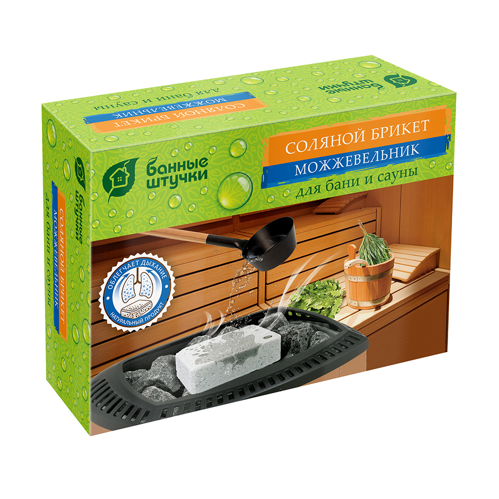 Соль осаждается тонким слоем на коже, обеспечивая мягкое очищение и разглаживание. Соляные пары очищают дыхательные пути. Можжевельник обладает бактерицидным, успокаивающим действием, снимает стресс. Если регулярно дышать соляным паром, то улучшается самочувствие, повышается тонус организма. Хватает примерно до 10 посещений сауны, бани.