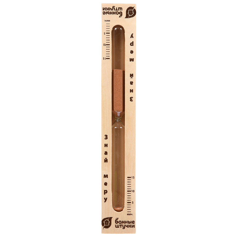 Часы песочные для бани и сауны БАННЫЕ ШТУЧКИ Знай меру изготовлены из термостойкого стекла и натурального дерева. За счёт таких часов вы сможете правильно оценивать длительность водных процедур, так же они станут приятным дополнением к любому интерьеру.