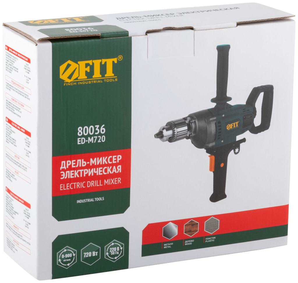 Дрель-миксер 720 Вт; 0-900 об/мин; КлП 3-16 мм; металл.корпус, рез.накл.; коробка