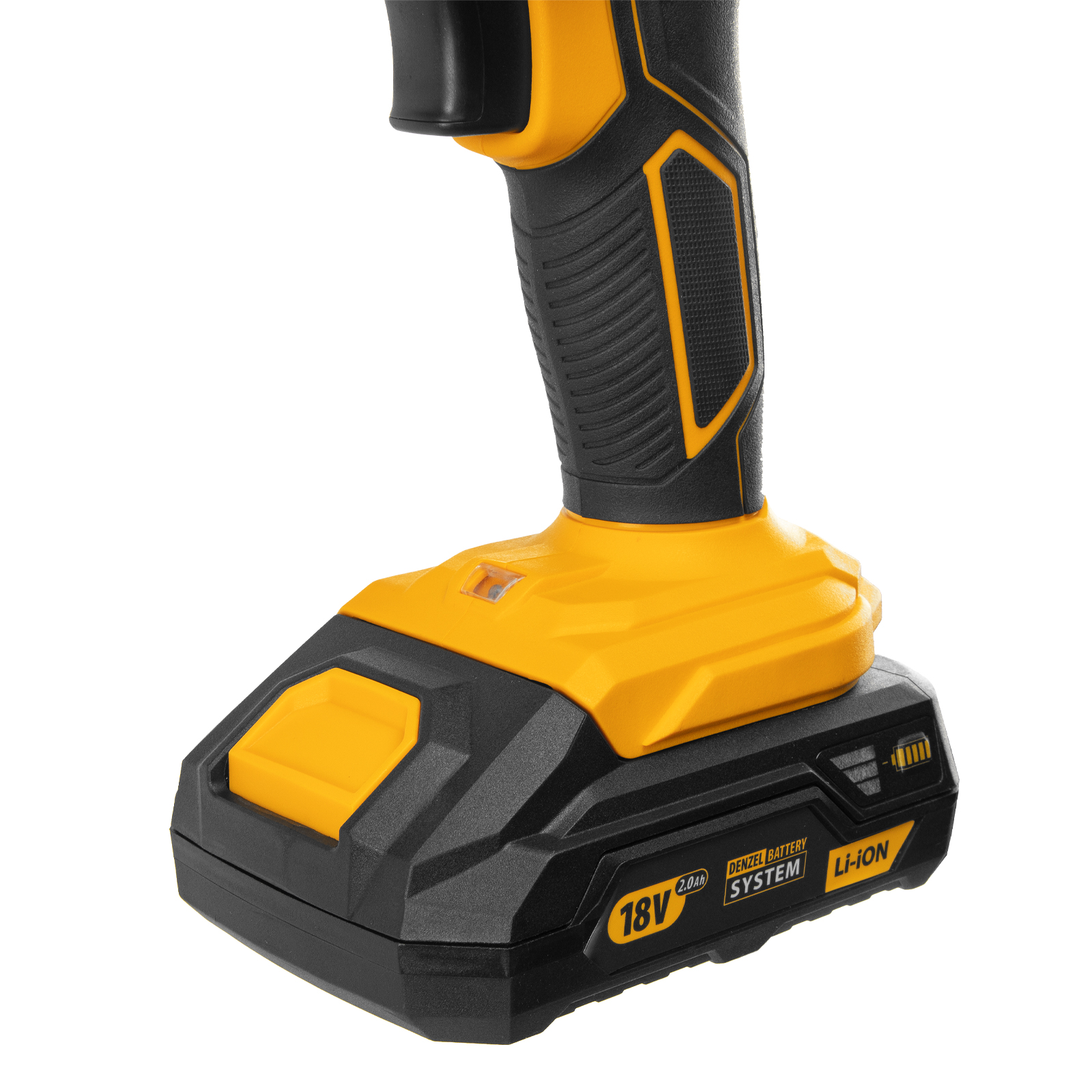 Универсальность — аккумуляторные батареи Li-ion емкостью 2 Ач совместимы с любым инструментом из модельного ряда единой платформы Denzel Battery System 18V.